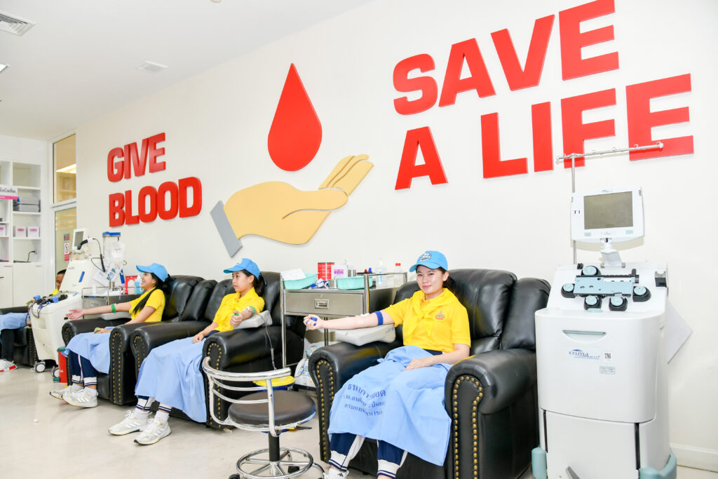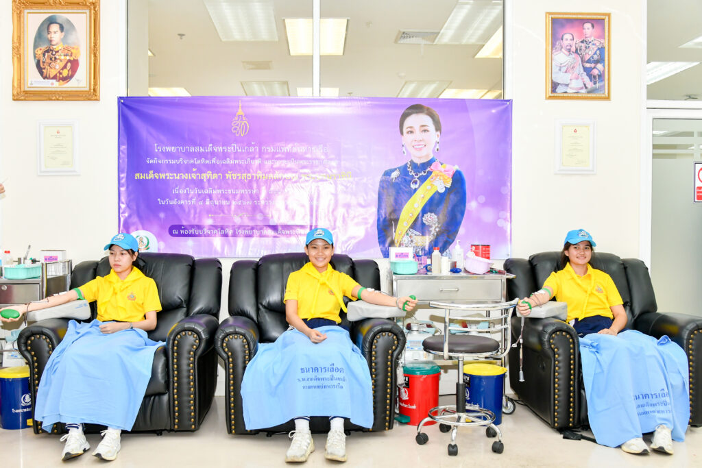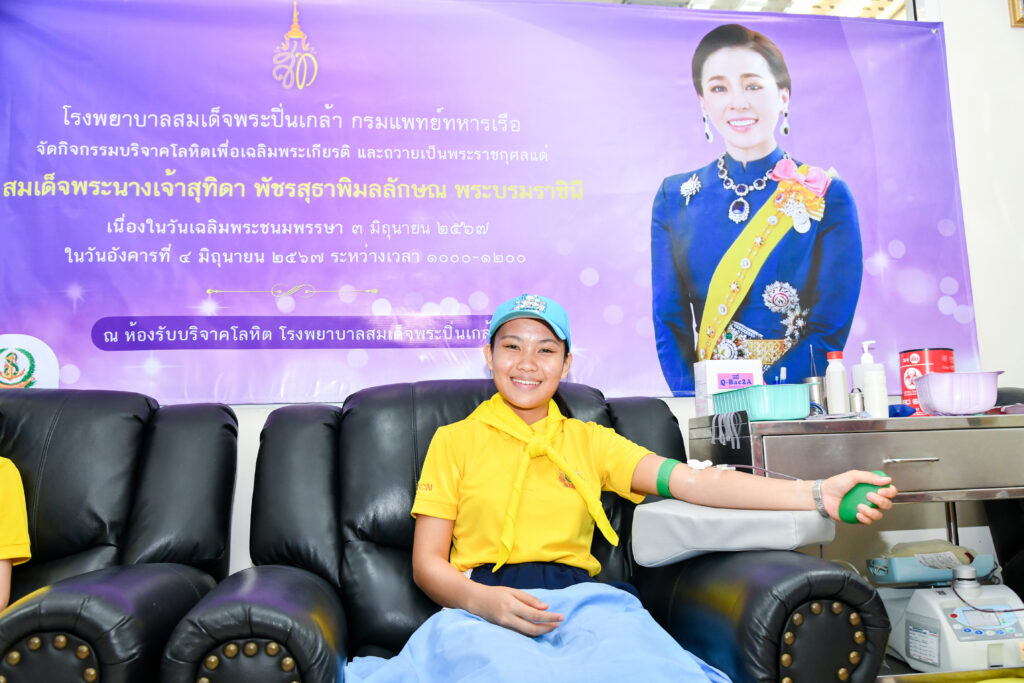 เมื่อ ๔ มิ.ย.๖๗ พล.ร.ต.วสุธา ข่ายแก้ว ผอ.รพ.สมเด็จพระปิ่นเกล้า พร. เป็นประธานเปิด กิจกรรมจิตอาสา “เราทำความ ดี ด้วยหัวใจ” บริจาคโลหิตเพื่อเฉลิมพระเกียรติ และถวายเป็นพระราชกุศลแด่ สมเด็จพระนางเจ้าสุทิดา พัชรสุธาพิมลลักษณ พระบรมราชินี เนื่องในวันเฉลิมพระชนมพรรษา ๓ มิถุนายน ๒๕๖๗ โดยมี ข้าราชการ พนักงานลูกจ้าง รพ.ฯ พร้อมด้วยนักเรียนพยาบาลจาก วพร.ศวก.พร. และ รร.นวก.ศวก.พร. ร่วมกิจกรรมบริจาคโลหิต ณ ห้องรับบริจาคโลหิต อาคารพิเคราะห์และบำบัดโรค ชั้น ๔ รพ.สมเด็จพระปิ่นเกล้า พร. / รพ.สมเด็จพระปิ่นเกล้าฯ / By ข่าวผู้บังคับบัญชา จำนวนคนดู : 8