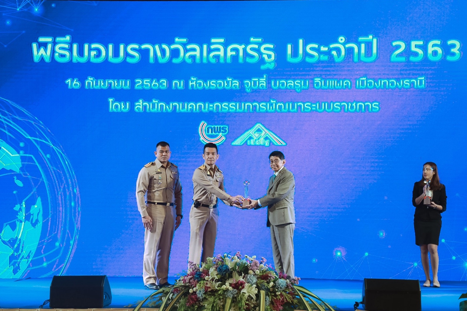 ๑๖ ก.ย. ๖๓ น.อ.พัฒนชัย เฉลิมวรรณ์ รอง ผอ.รพ.สมเด็จพระปิ่นเกล้า พร. ฝ่ายสนับสนุน และ น.อ.เถลิงเกียรติ แจ่มอุลิตรัตน์ รอง หน.กลุ่มงานรังสีวิทยา รพ.ฯ เข้ารับรางวัลเลิศรัฐ ประจำปี ๒๕๖๓ จาก สำนักงานคณะกรรมการพัฒนาระบบราชการ ( ก.พ.ร.) สาขาการบริการภาครัฐ ประเภทนวัตกรรมการบริการ ระดับดีเด่น ของกลุ่มงานรังสีวิทยา รพ.สมเด็จพระปิ่นเกล้า พร. ชื่อผลงาน “ ตู้ฉากตะกั่วป้องกันรังสีต้านมะเร็ง ( Rayless radioprotective cabin ” โดยมี นายวิษณุ เครืองาม รองนายกรัฐมนตรี เป็นผู้มอบรางวัล