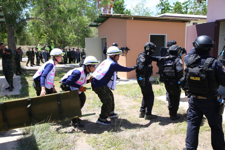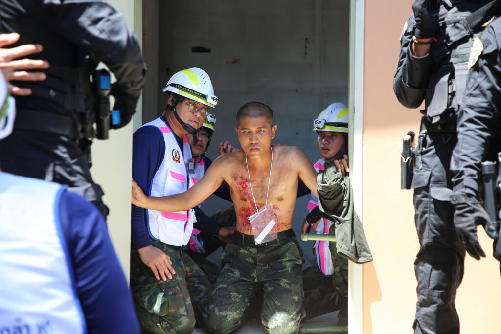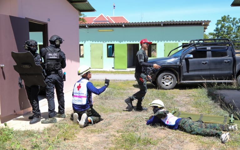 ระหว่าง ๑๙ – ๒๑ มิ.ย.๖๗ รพ.สมเด็จพระปิ่นเกล้า พร. จัดชุดปฏิบัติการฉุกเฉินทางการแพทย์ระดับสูงในภาวะภัยพิบัติ (MERT) เข้าร่วมการฝึกปฏิบัติการทางการแพทย์ร่วมในการรับมือภัยคุกคามมิติต่างๆ ประจำปีงบประมาณ ๒๕๖๗ ซึ่งเป็นการฝึกร่วมกันระหว่างหน่วยแพทย์ของกระทรวงกลาโหม ประกอบด้วย กองบัญชาการกองทัพไทย กองทัพบก กองทัพเรือ กองทัพอากาศ และสำนักงานตำรวจแห่งชาติ เพื่อเป็นการเตรียมความพร้อมด้านการแพทย์รวมถึงพัฒนาศักยภาพทางการแพทย์ให้มีประสิทธิภาพมากขึ้นในการเผชิญภัยคุกคามทุกรูปแบบ ทุกมิติ และทุกระดับความรุนแรง ณ ค่ายพระรามหก จว.เพชรบุรี และ ค่ายนเรศวร จว.ประจวบคีรีขันธ์ / รพ.สมเด็จพระปิ่นเกล้าฯ / By ข่าวผู้บังคับบัญชา จำนวนคนดู : 7
