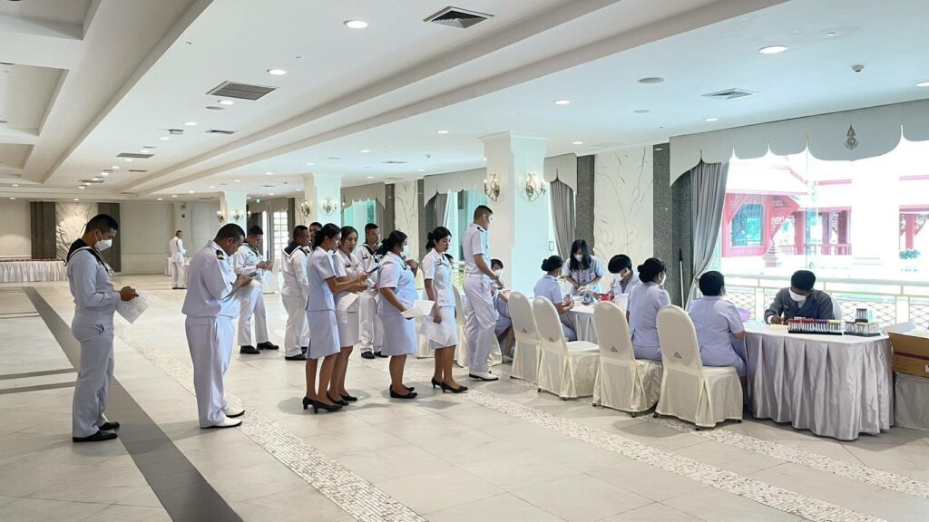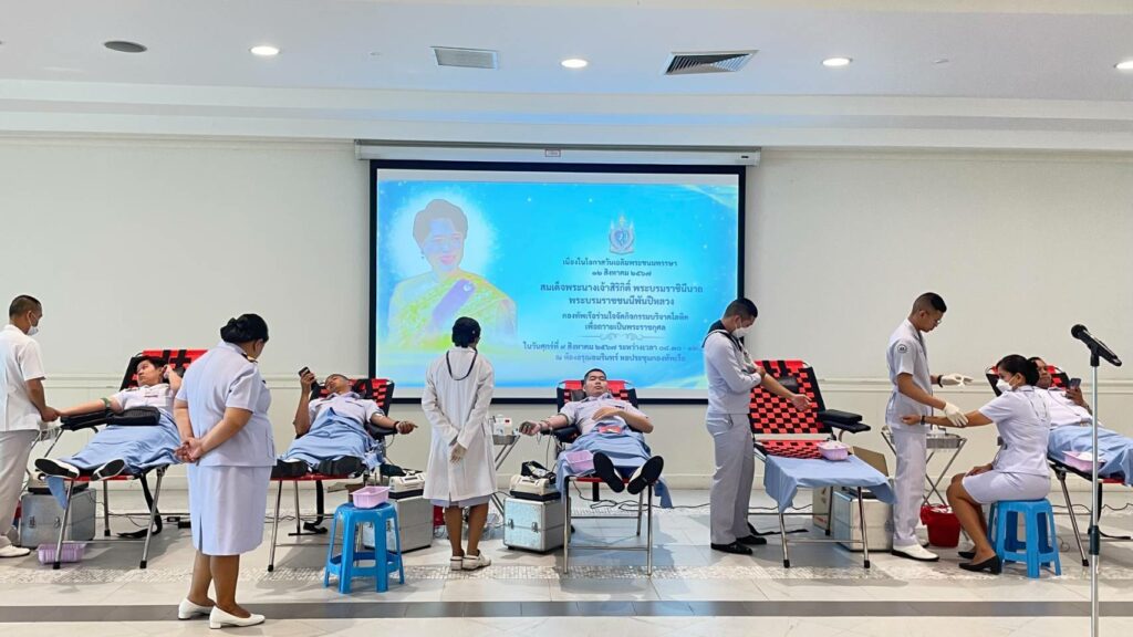 เมื่อ ๙ ส.ค.๖๗ แผนกคลังเลือด กลุ่มงานพยาธิวิทยา รพ.สมเด็จพระปิ่นเกล้า พร. ออกหน่วยรับบริจาคโลหิต เนื่องในโอกาสวันเฉลิมพระชนมพรรษา สมเด็จพระนางเจ้าสิริกิติ์ พระบรมราชินีนาถ พระบรมราชชนนีพันปีหลวง ๑๒ สิงหาคม ๒๕๖๗  ในกิจกรรมรับบริจาคโลหิต โดยมี ข้าราชการ พนักงานราชการ และ พลทหาร ร่วมบริจาคฯ ณ ห้องอรุณอัมรินทร์ หอประชุมกองทัพเรือ