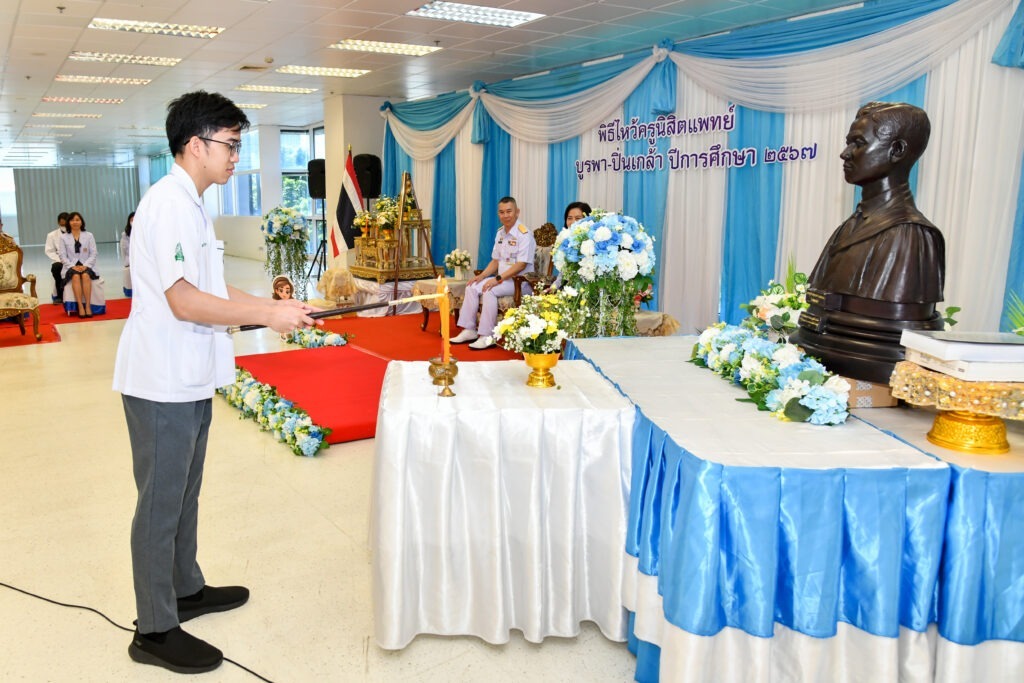 เมื่อ ๑๕ ส.ค.๖๗ พล.ร.ต.วสุธา ข่ายแก้ว ผอ.รพ.สมเด็จพระปิ่นเกล้า พร. เป็นประธานพิธีไหว้ครูนิสิตแพทย์ บูรพา-ปิ่นเกล้า ประจำปีการศึกษา ๒๕๖๗ โดยมี พล.ร.ต.ภาวิกา ธรรมโน ที่ปรึกษา ผอ.ศูนย์แพทยศาสตรศึกษา รพ.ฯ พร้อมด้วยคณะอาจารย์แพทย์ เข้าร่วมพิธีฯ ณ ห้องอเนกประสงค์ อาคารผู้ป่วยนอก ชั้น ๓ รพ.สมเด็จพระปิ่นเกล้า พร. / รพ.สมเด็จพระปิ่นเกล้าฯ / By ข่าวผู้บังคับบัญชา จำนวนคนดู : 8