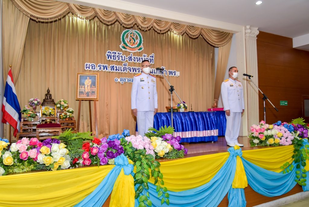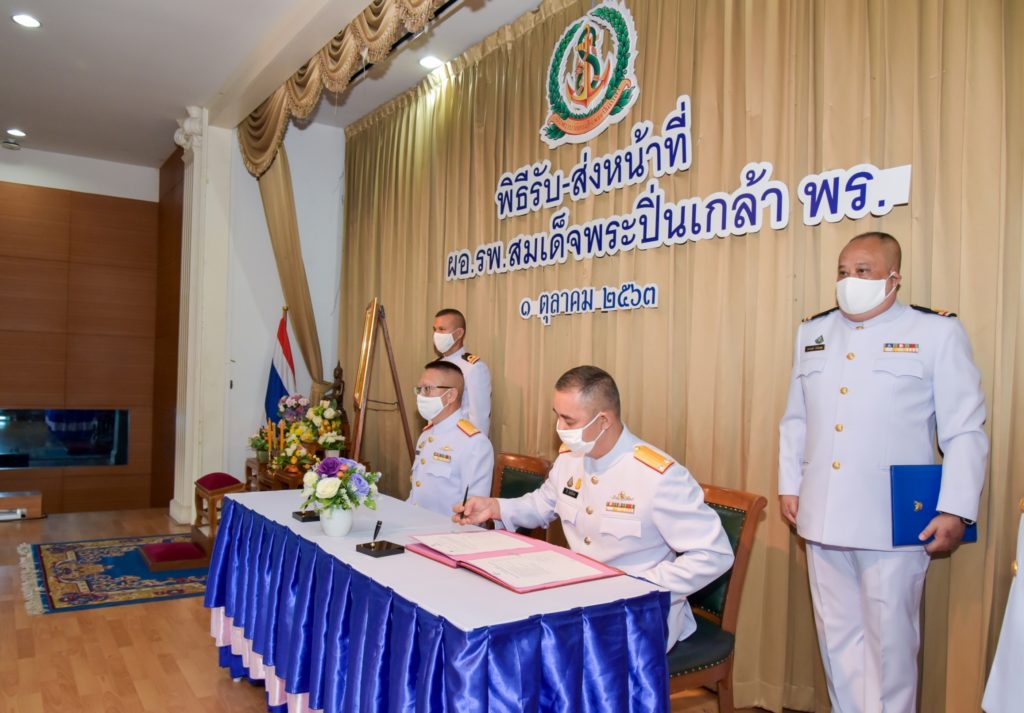 พลเรือตรี ธนรักษ์ เอี่ยวสานุรักษ์ ทำพิธีส่งมอบหน้าที่ ผู้อำนวยการโรงพยาบาลสมเด็จพระปิ่นเกล้า กรมแพทย์ทหารเรือ ให้แก่ พลเรือตรี นิธิ พงศ์อนันต์ ณ ห้องประชุมประพัฒน์ศรี สโมสร รพ.ฯ