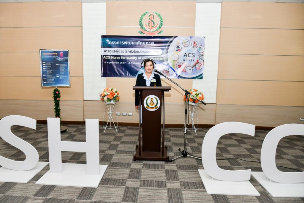 เมื่อ ๑๔ พ.ย.๖๗ น.อ.หญิง เฉลิมศรี สองห้อง รอง ผอ.รพ.สมเด็จพระปิ่นเกล้า พร. ฝ่ายการพยาบาล เป็นประธานเปิดโครงการ “พัฒนาศักยภาพการดูแลผู้ป่วยโรคหัวใจและหลอดเลือด : ACS Nurse for Quality of Cardiac Care” จัดโดย ศูนย์หัวใจ รพ.ฯ ร่วมกับ ฝ่ายการพยาบาล รพ.ฯ ณ ห้องประชุม พลเรือเอก หม่อมเจ้าปุสาณ สวัสดิวัตน์ อาคารผู้ป่วยนอก ชั้น ๓ รพ.สมเด็จพระปิ่นเกล้า พร.