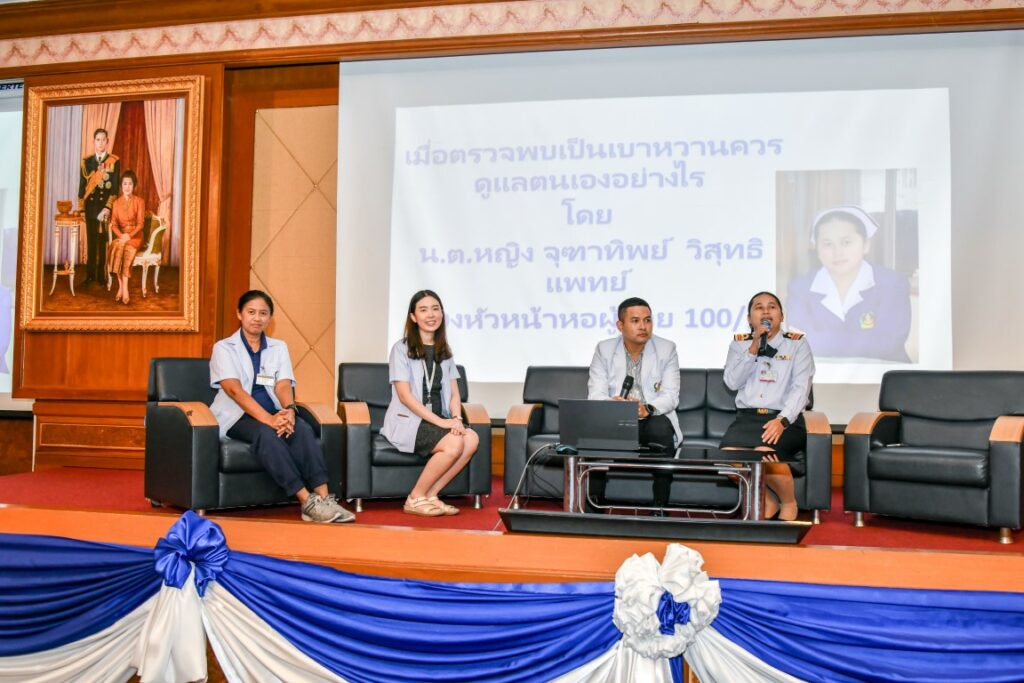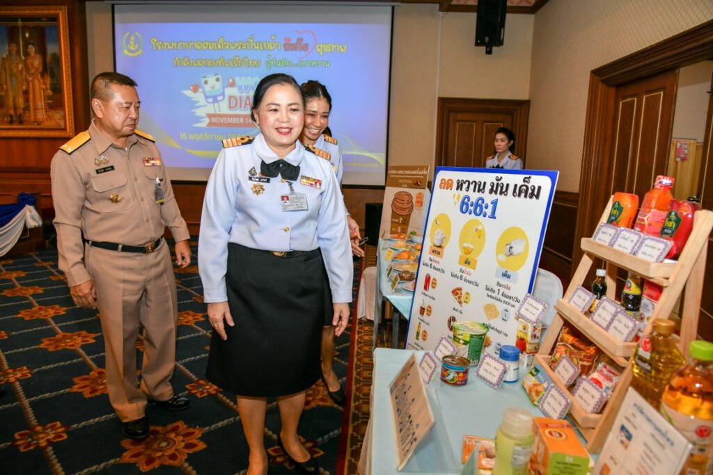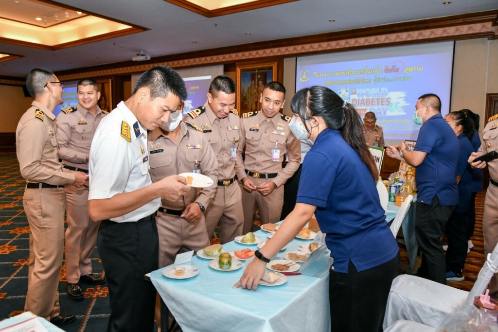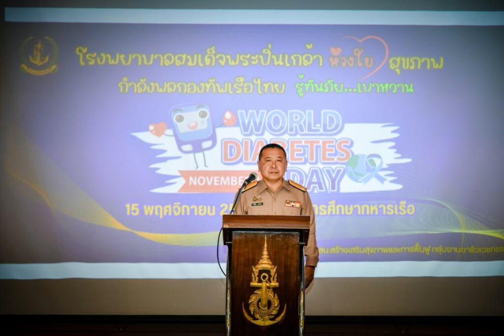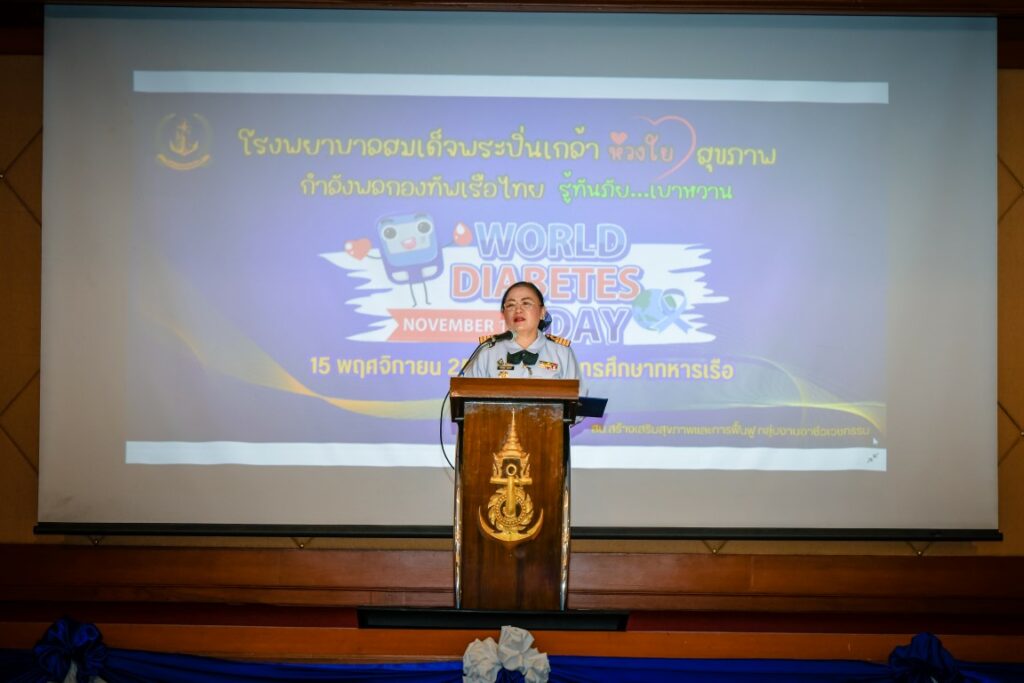 เมื่อ ๑๕ พ.ย.๖๗ พล.ร.ต.ศักดิ์ชัย อนันตชัย รองเจ้ากรมยุทธศึกษาทหารเรือ เป็นประธานเปิดโครงการ “ วันเบาหวานโลก ” ประจำปี ๒๕๖๗ โดยมี น.อ.หญิง ดร.ทพญ.จีระวัฒน์ กฤษณพันธ์ ว่องวิทย์ นายกสมาคมภริยาทหารเรือ และรอง ผอ.รพ.สมเด็จพระปิ่นเกล้า พร. ฝ่ายการแพทย์เชิงรุก เข้าร่วมกิจกรรมฯ พร้อมทั้งกล่าวขอบคุณผู้เกี่ยวข้องสหวิชาชีพต่างๆ ที่ดำเนินการจัดกิจกรรมวันเบาหวานโลก พร้อมทั้งเยี่ยมชมบูธกิจกรรมต่างๆ โดยภายในงานมีกิจกรรมการตรวจวัดระดับน้ำตาลในเลือดโดยการเจาะเลือดที่ปลายนิ้วพร้อมแปลผล เพื่อเป็นการคัดกรองและประเมินความเสี่ยงต่อการเกิดเบาหวาน การตรวจจอประสาทตา และการตรวจสุขภาพช่องปาก การให้ความรู้ด้านการบริโภคอาหาร การแนะนำการออกกำลังกาย การประชาสัมพันธ์การให้บริการ One stop service ของคลินิกเบาหวาน รวมถึงการให้แนะนำการใช้ยาในรูปแบบต่างๆ สำหรับโรคเบาหวานโดยเภสัชกร พร้อมทั้งรับฟังการเสวนาให้ความรู้ภายใต้ธีม “ Diabetes and Well-Being ” จากสหวิชาชีพ จัดโดย สน.สร้างเสริมสุขภาพและการฟื้นฟู กลุ่มงานอาชีวเวชกรรม รพ.ฯ ร่วมกับ ทีมสหวิชาชีพ รพ.ฯ ณ ห้องประชุมบริพัตร อาคารสถาบันวิชาการทหารเรือชั้นสูง กรมยุทธศึกษาทหารเรือ จว.นครปฐม / รพ.สมเด็จพระปิ่นเกล้าฯ / By ข่าวผู้บังคับบัญชา จำนวนคนดู : 6
