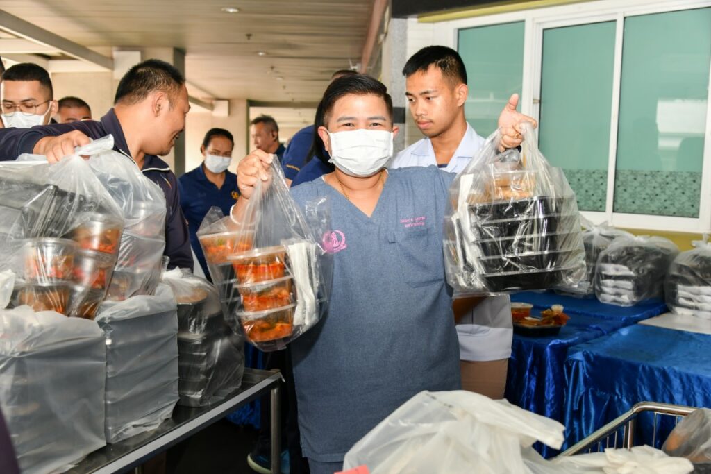 เมื่อ ๒๙ พ.ย.๖๗ พล.ร.ต.สมชาย จันทโรธร ผอ.รพ.สมเด็จพระปิ่นเกล้า พร. พร้อมด้วยคณะผู้บริหาร รพ.ฯ ดำเนินการจัดเลี้ยงอาหารกลางวันให้แก่ข้าราชการ พนักงานลูกจ้าง สังกัด รพ.ฯ ตามดำริของ ผบ.ทร. เนื่องในวันกองทัพเรือ ประจำปี ๒๕๖๗ พร้อมทั้งร่วมรับประทานอาหารกลางวันกับกำลังพล รพ.ฯ ณ ห้องประพัฒน์ศรี สโมสร รพ.ฯ และอาคารเฉลิมพระเกียรติ ๘๐ พรรษา รพ.สมเด็จพระปิ่นเกล้า พร. / รพ.สมเด็จพระปิ่นเกล้าฯ / By ข่าวผู้บังคับบัญชา จำนวนคนดู : 5