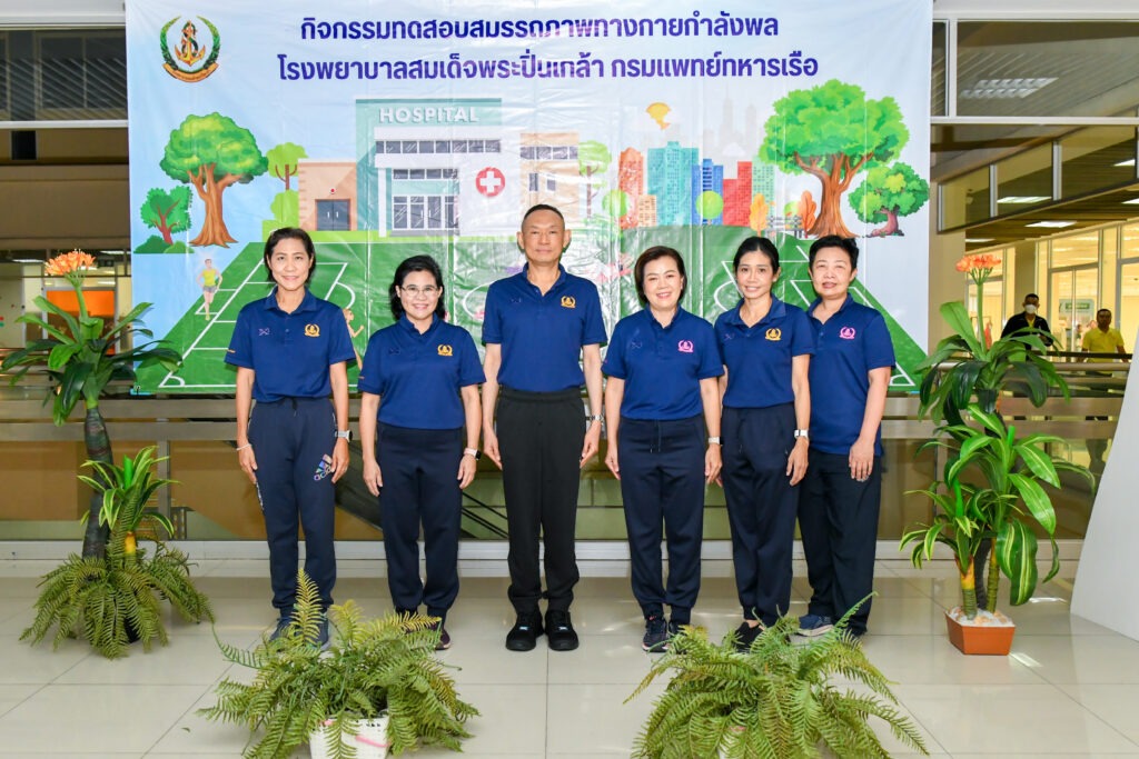 ระหว่าง ๑๗ – ๒๑ ก.พ.๖๘ พล.ร.ต.สมชาย จันทโรธร ผอ.รพ.สมเด็จพระปิ่นเกล้า พร. พร้อมด้วย น.อ.หญิง จันทราภรณ์ เคียมเส็ง รอง ผอ.รพ.ฯ ฝ่ายบริหาร และ น.อ.หญิง เฉลิมศรี สองห้อง รอง ผอ.รพ.ฯ ฝ่ายการพยาบาล นำกำลังพล รพ.ฯ เข้าร่วมกิจกรรมทดสอบสมรรถภาพทางกาย ครั้งที่ ๑ ประจำปีงบประมาณ ๒๕๖๘ ณ ห้องอเนกประสงค์ อาคารผู้ป่วยนอก ชั้น ๓ รพ.สมเด็จพระปิ่นเกล้า พร.