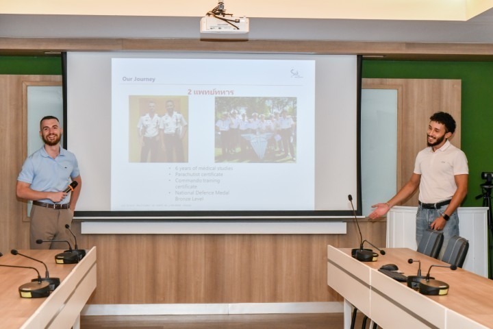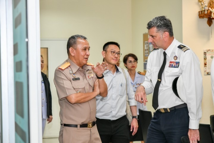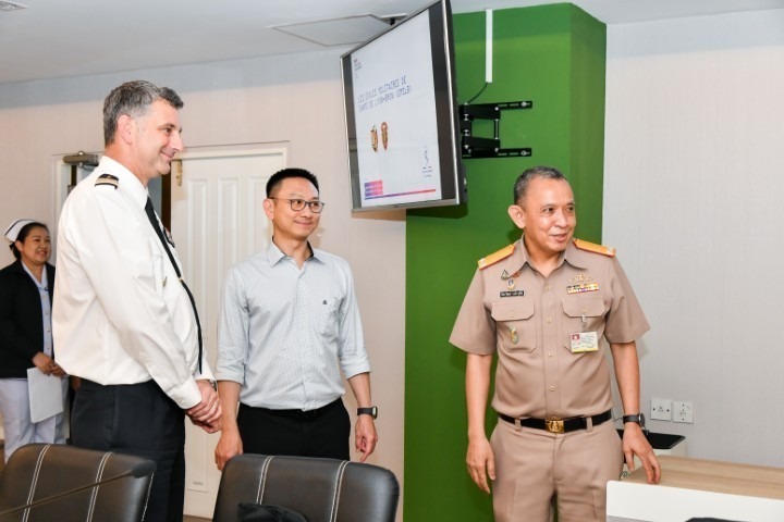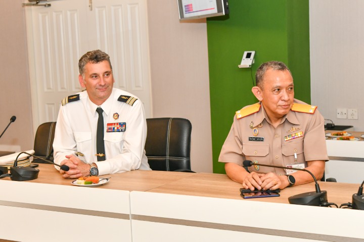 เมื่อ ๑๑ มี.ค. ๖๘ พล.ร.ต.ปิยะวัฒน์ วงษ์วานิช ผู้ทรงคุณวุฒิทหารเรือ/ศัลยแพทย์ รพ.สมเด็จพระปิ่นเกล้า พร. ให้การต้อนรับ นาวาอากาศ ฟร็องก์ อาร์โนดง (Franck Arnaudon) ผู้ช่วยทูตฝ่ายทหาร สถานเอกอัครราชทูตฝรั่งเศสประจำประเทศไทย ในโอกาสนำนักศึกษาแพทย์ชั้นปีที่ ๖ ซึ่งกำลังฝึกงานอยู่ที่ รพ.กลาง เข้าศึกษาดูงานและเยี่ยมชมหน่วยงานใน รพ.ฯ ณ ห้องประชุมกองศัลยกรรม ชั้น ๒ อาคาร ๑๐๐ ปี รพ.สมเด็จพระปิ่นเกล้า พร. / รพ.สมเด็จพระปิ่นเกล้าฯ / By ข่าวผู้บังคับบัญชา จำนวนคนดู : 9
