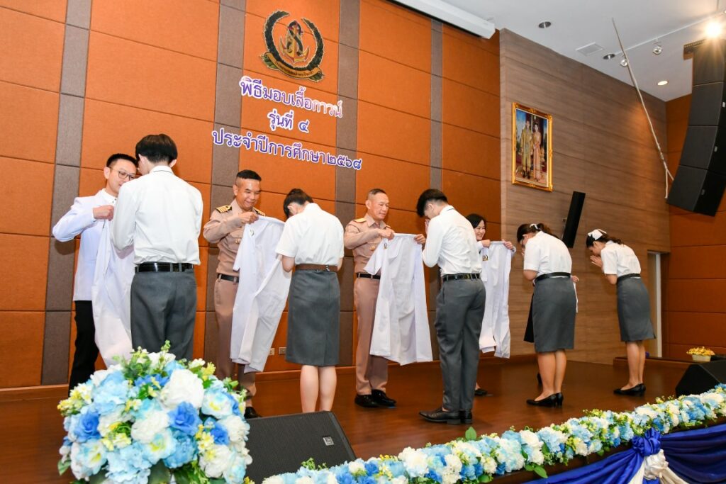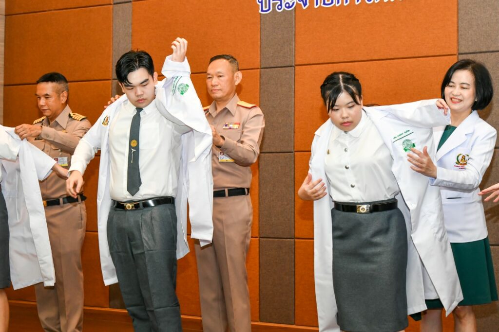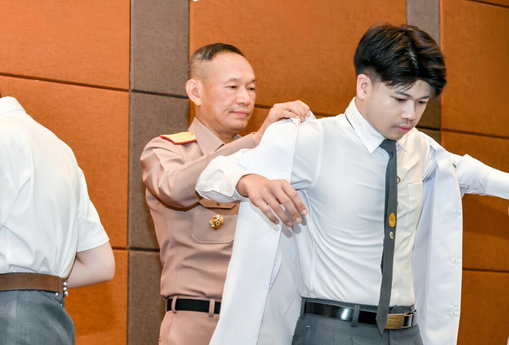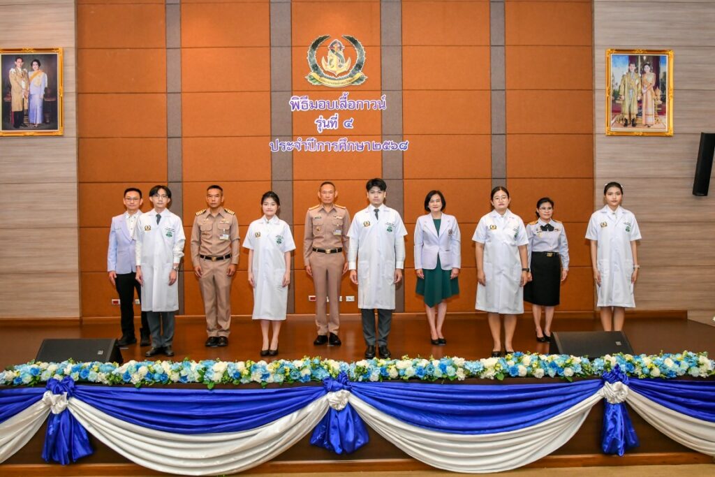 เมื่อ ๒๘ เม.ย.๖๘ พล.ร.ต.สมชาย จันทโรธร ผอ.รพ.สมเด็จพระปิ่นเกล้า พร. เป็นประธานในพิธีมอบเสื้อกาวน์แก่นิสิตแพทย์ชั้นปีที่ ๔ ศูนย์แพทยศาสตรศึกษาชั้นคลินิก รพ.สมเด็จพระปิ่นเกล้า – มหาวิทยาลัยบูรพา รุ่นที่ ๔ ประจำปีการศึกษา ๒๕๖๘ โดยมี พล.ร.ต.หญิง ภาวิกา ธรรมโน ที่ปรึกษา ผอ.รพ.ฯ งานแพทยศาสตรศึกษา พร้อมคณะผู้บริหาร อาจารย์แพทย์ เข้าร่วมพิธีฯ ณ ห้องประชุม พลเรือตรี เล็ก สุมิตร ชั้น ๕ อาคารพิเคราะห์และบำบัดโรค รพ.ฯ