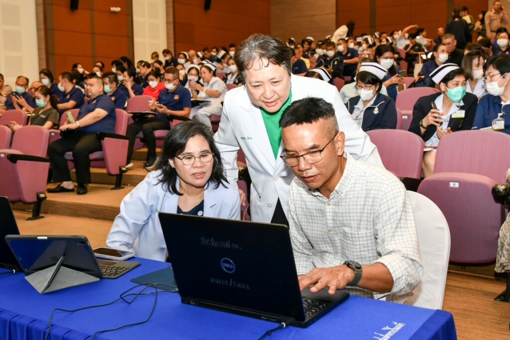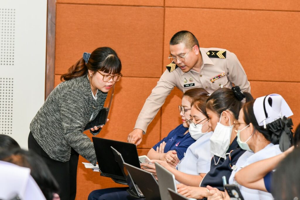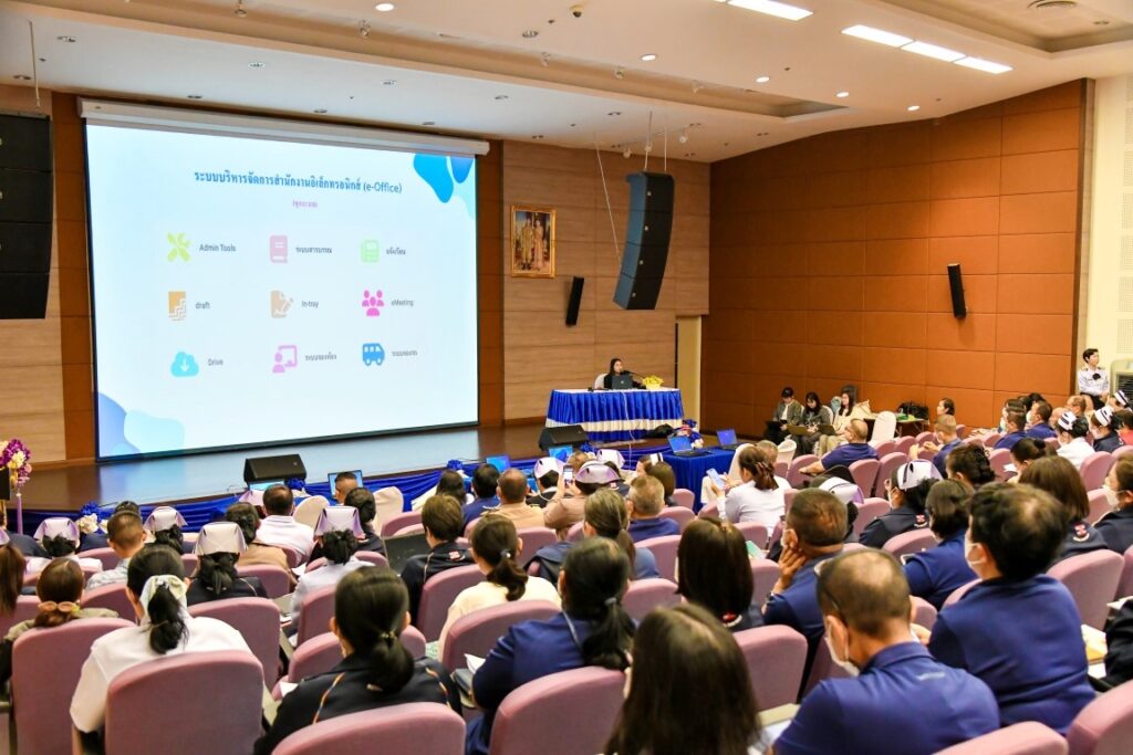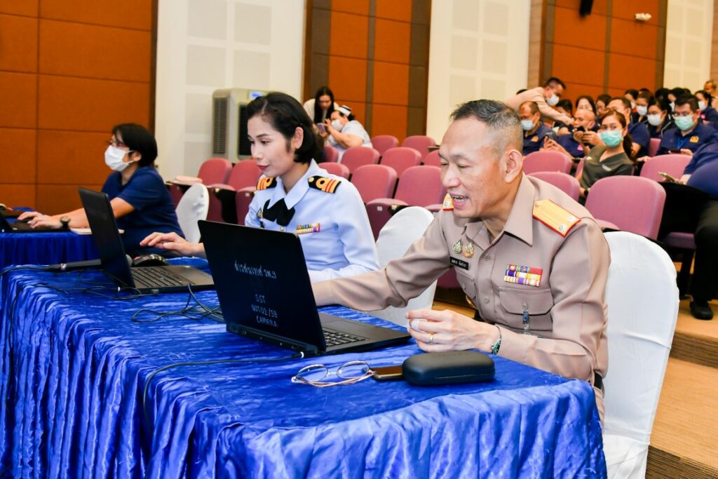 เมื่อ ๒๑ พ.ค.๖๘ พล.ร.ต.สมชาย จันทโรธร ผอ.รพ.สมเด็จพระปิ่นเกล้า พร. พร้อมคณะผู้บริหาร ข้าราชการ พนักงานลูกจ้าง รพ.ฯ เข้าร่วมการอบรมการใช้งานระบบสารบรรณอิเล็กทรอนิกส์ จัดโดย สน.กำลังพล รพ.ฯ เพื่อให้สามารถบริหารจัดการงานเอกสารเข้าสู่ระบบอิเล็กทรอนิกส์ได้อย่างมีประสิทธิภาพ ณ ห้องประชุม พลเรือตรี เล็ก สุมิตร ชั้น ๕ อาคารพิเคราะห์และบำบัดโรค รพ.ฯ