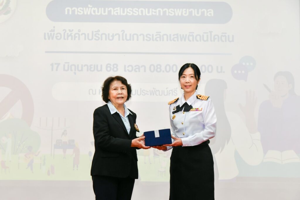เมื่อ ๑๗ มิ.ย.๖๘ น.อ.หญิง พิมพ์สิริ ชมะนันทน์ รอง ผอ.รพ.สมเด็จพระปิ่นเกล้า พร. ฝ่ายบริการสุขภาพ เป็นประธานเปิดการอบรมเชิงปฏิบัติการ “การพัฒนาสมรรถนะการพยาบาลเพื่อให้คำปรึกษาในการเลิกเสพติดนิโคติน” จัดโดย แผนกคลินิกอาชีวเวชกรรม กลุ่มงานอาชีวเวชกรรม รพ.ฯ ร่วมกับ คณะกรรมการ รพ.สมเด็จพระปิ่นเกล้าปลอดบุหรี่ โดยได้รับเกียรติจาก รองศาสตราจารย์ ดร.อรสา พันธ์ภักดี คณะกรรมการเครือข่ายพยาบาลเพื่อการควบคุมยาสูบแห่งประเทศไทย รวมทั้งคณาจารย์เครือข่ายพยาบาลเพื่อการควบคุมยาสูบแห่งประเทศไทย จากวิทยาลัยพยาบาลกองทัพเรือ เป็นวิทยากรบรรยายให้ความรู้ ณ ห้องประชุมประพัฒน์ศรี สโมสร รพ.ฯ / รพ.สมเด็จพระปิ่นเกล้าฯ / By ข่าวผู้บังคับบัญชา จำนวนคนดู : 5