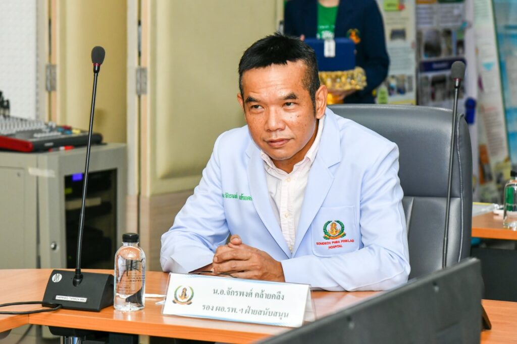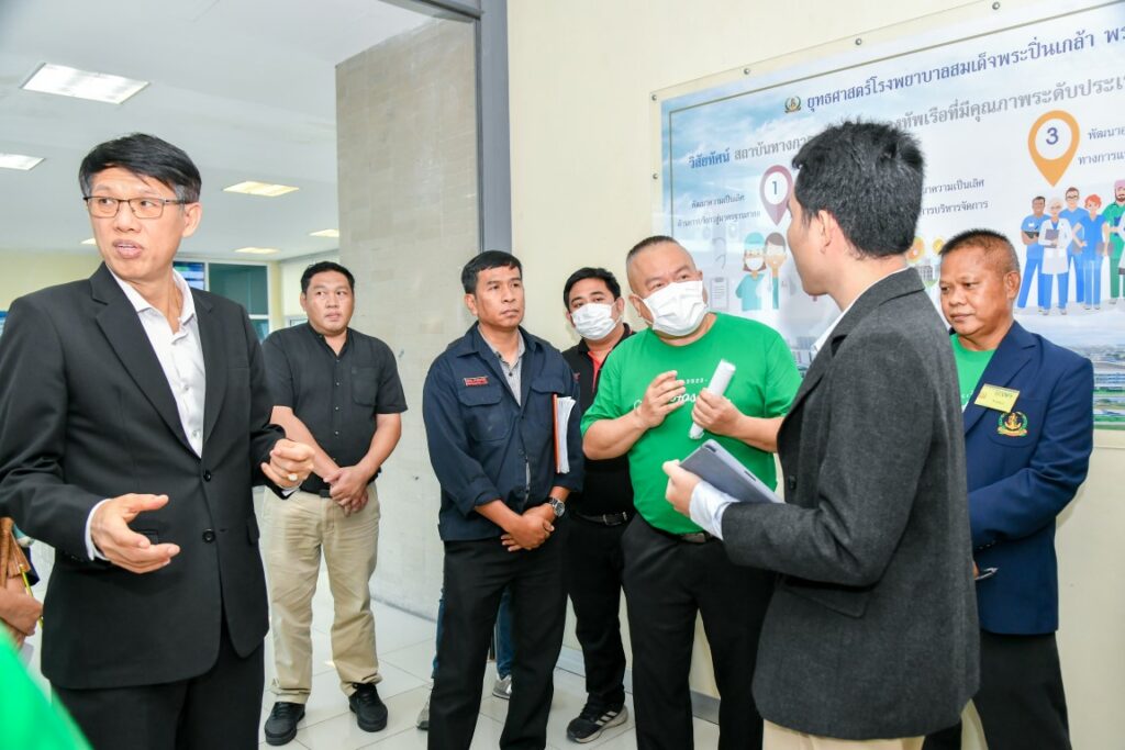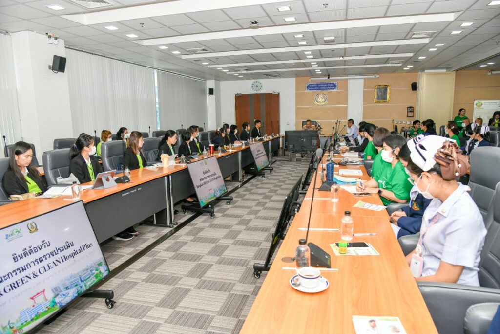 เมื่อ ๙ ก.ค.๖๘ พล.ร.ต.สมชาย จันทโรธร ผอ.รพ.สมเด็จพระปิ่นเกล้า พร. เป็นประธานให้การต้อนรับคณะกรรมการจากสำนักการแพทย์ กรุงเทพมหานคร และสถาบันพัฒนาสุขภาวะเขตเมือง กรมอนามัย กระทรวงสาธารณสุข ในการตรวจประเมินเพื่อรับรองมาตรฐานอนามัยสิ่งแวดล้อมในสถานพยาบาล Bangkok GREEN & CLEAN Hospital Plus (BKKGC+) ประจำปี ๒๕๖๘ ณ ห้องประชุม พลเรือเอก หม่อมเจ้าปุสาณ สวัสดิวัตน์ ชั้น ๓ อาคารผู้ป่วยนอก รพ.ฯ / รพ.สมเด็จพระปิ่นเกล้าฯ / By ข่าวผู้บังคับบัญชา จำนวนคนดู : 0