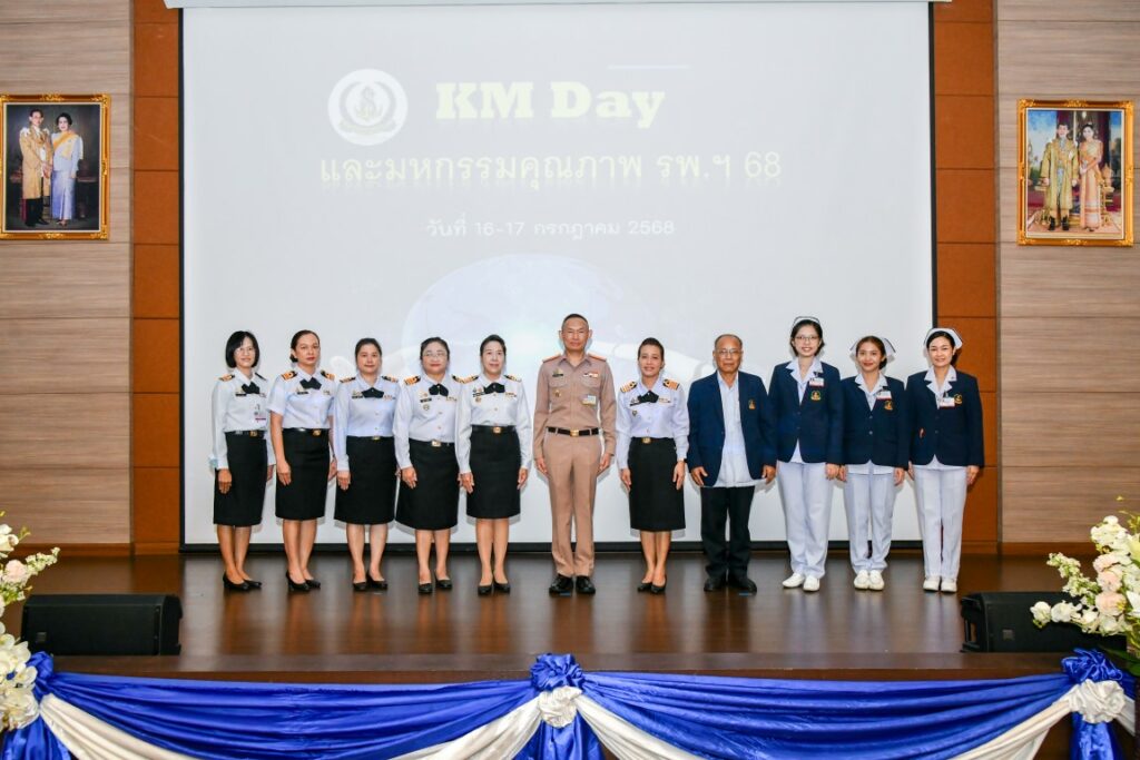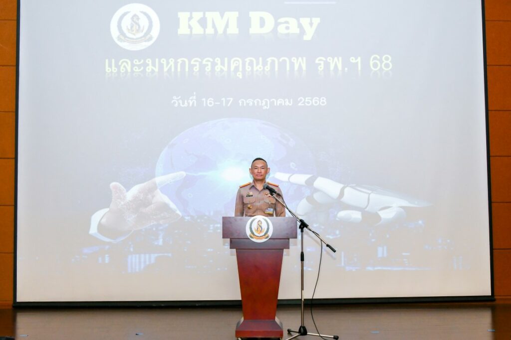 เมื่อ 16 ก.ค.๖๘ พล.ร.ต.สมชาย จันทโรธร ผอ.รพ.สมเด็จพระปิ่นเกล้า พร. เป็นประธานเปิดงานกิจกรรม KM Day ประจำปี ๒๕๖๘ ภายใต้แนวคิด “จากเวทีสู่เวที : แรงบันดาลใจสู่ความสำเร็จ” และกิจกรรมมหกรรมคุณภาพ รพ.ฯ ภายใต้แนวคิด “ Learn – Share – Shine : เรียนรู้ แบ่งปัน จุดประกายความสำเร็จ ” จัดโดย ศูนย์คุณภาพและยุทธศาสตร์ รพ.ฯ ณ ห้องประชุมพลเรือตรี เล็ก สุมิตร ชั้น ๕ อาคารพิเคราะห์และบำบัดโรค รพ.ฯ / รพ.สมเด็จพระปิ่นเกล้าฯ / By ข่าวผู้บังคับบัญชา จำนวนคนดู : 0