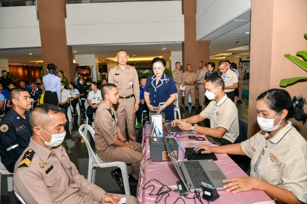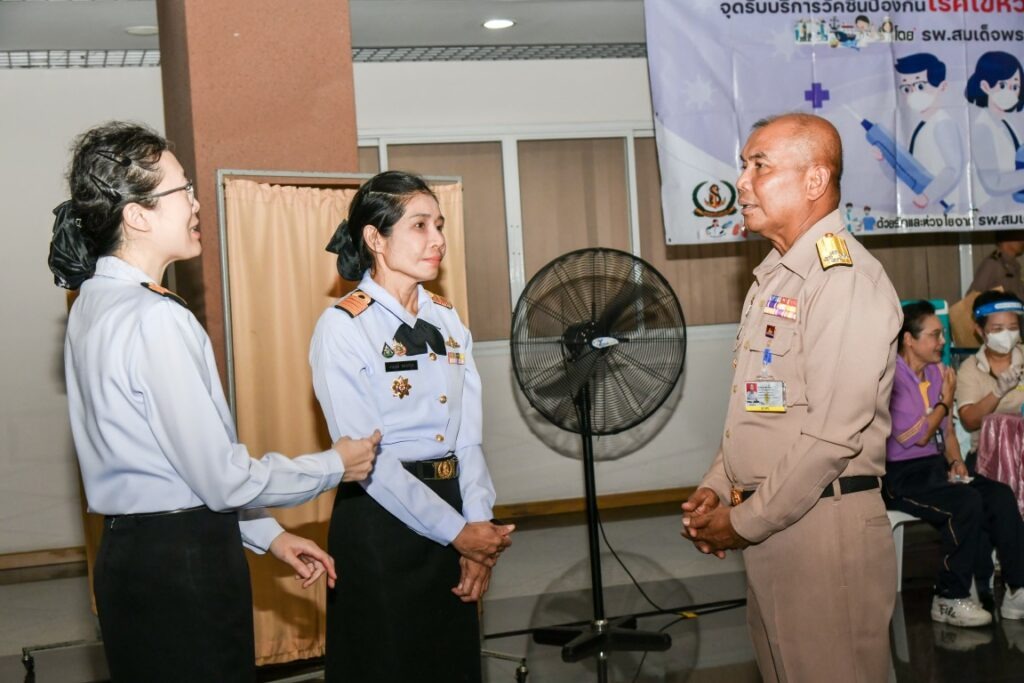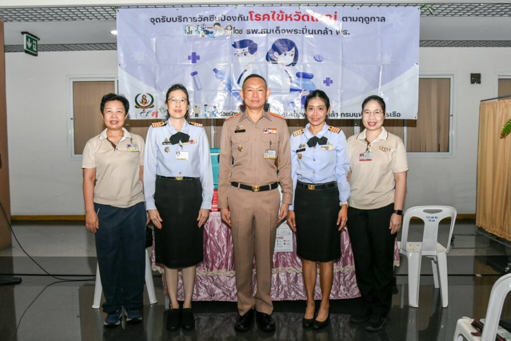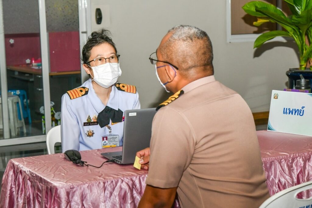 เมื่อ ๒๓ ก.ค.๖๘ พล.ร.อ.พิจิตต ศรีรุ่งเรือง ผช.ผบ.ทร. หัวหน้าคณะทำงานส่งเสริมสุขภาพกำลังพล ทร. พร้อมด้วย พล.ร.ต.หญิง ดอกเตอร์ ทันตแพทย์หญิง จีระวัฒน์ กฤษณพันธ์ ว่องวิทย์ นายกสมาคมภริยาทหารเรือ ตรวจเยี่ยมการดำเนินงานให้บริการฉีดวัคซีนป้องกันไข้หวัดใหญ่ ๓ สายพันธุ์ ให้แก่กำลังพล ทร. จัดโดย คลินิกวัคซีนผู้ใหญ่และวัยรุ่น กลุ่มงานอาชีวเวชกรรม รพ.สมเด็จพระปิ่นเกล้า พร. โดยมี พล.ร.ต.สมชาย จันทโรธรผอ.รพ.สมเด็จพระปิ่นเกล้า พร. ให้การต้อนรับฯ ณ บริเวณโถงชั้น ๑ อาคารส่วนบัญชาการ ทร. พื้นที่วังนันทอุทยาน เขตบางกอกน้อย กรุงเทพฯ / รพ.สมเด็จพระปิ่นเกล้าฯ / By ข่าวผู้บังคับบัญชา จำนวนคนดู : 0