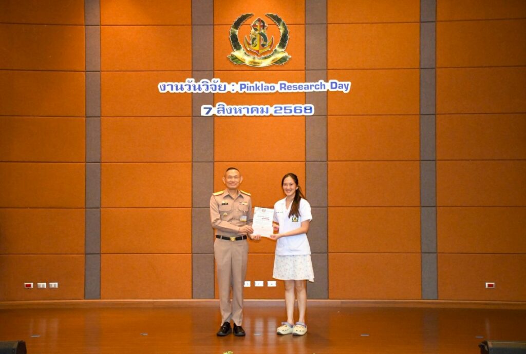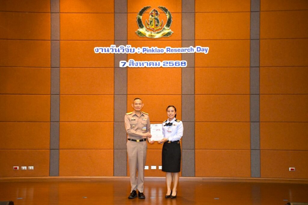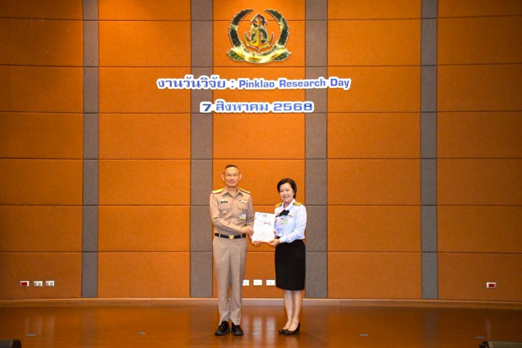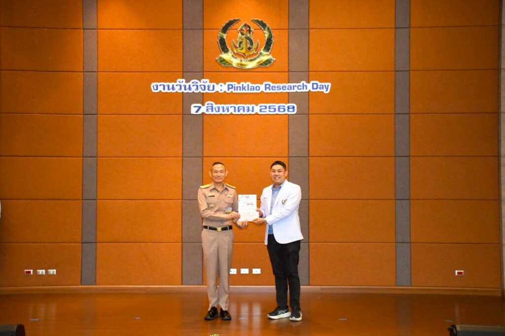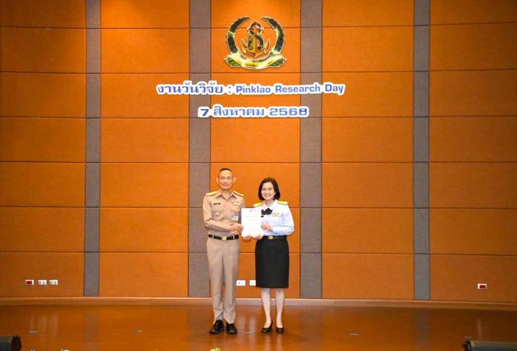 เมื่อ ๗ ส.ค.๖๘ พล.ร.ต.หญิง ภาวิกา ธรรมโน ประธานคณะกรรมการส่งเสริมงานวิจัย รพ.สมเด็จพระปิ่นเกล้า พร. เป็นประธานเปิดงาน “วันวิจัย Pinklao Research Day ๒๐๒๕” โดยมีกิจกรรมการประกวดการนำเสนอผลงานวิจัยในรูปแบบ Oral Presentation และ Poster Presentation และการบรรยายให้ความรู้ทางวิชาการเกี่ยวกับงานวิจัย พร้อมทั้งมีพิธีมอบรางวัลโครงการวิจัยประเภทต่างๆ ได้แก่ รางวัลโครงร่างการวิจัยที่ได้รับการรับรอง รางวัลการส่งรายงานวิจัยฉบับสมบูรณ์ รางวัลผลงานวิจัยที่นำเสนอภายนอก พร. และ รางวัลผลงานวิจัยตีพิมพ์ระดับชาติหรือระดับนานาชาติ โดยมี พล.ร.ต.สมชาย จันทโรธร ผอ.รพ.ฯ ให้เกียรติมอบรางวัลฯ ณ ห้องประชุม พลเรือตรี เล็ก สุมิตร ชั้น ๕ อาคารพิเคราะห์และบำบัดโรค รพ.ฯ / รพ.สมเด็จพระปิ่นเกล้าฯ / By ข่าวผู้บังคับบัญชา จำนวนคนดู : 0