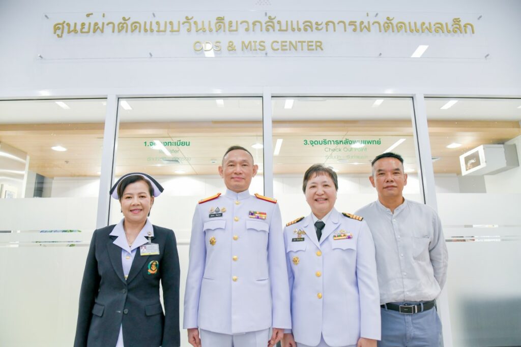 เมื่อ ๘ ส.ค.๖๘ พล.ร.ต.สมชาย จันทโรธร ผอ.รพ.สมเด็จพระปิ่นเกล้า พร. เป็นประธานพิธีเปิด “ศูนย์ผ่าตัดแบบวันเดียวกลับและการผ่าตัดแผลเล็ก (ODS & MIS CENTER)” และ “คลินิกประเมินและเตรียมความพร้อมผู้ป่วยก่อนระงับความรู้สึก (PRE ANESTHETIC CLINIC)” ซึ่งได้เปิดให้บริการ ณ ชั้น ๓ อาคารผู้ป่วยใน ๑๔ ชั้น รพ.ฯ / รพ.สมเด็จพระปิ่นเกล้าฯ / By ข่าวผู้บังคับบัญชา จำนวนคนดู : 0