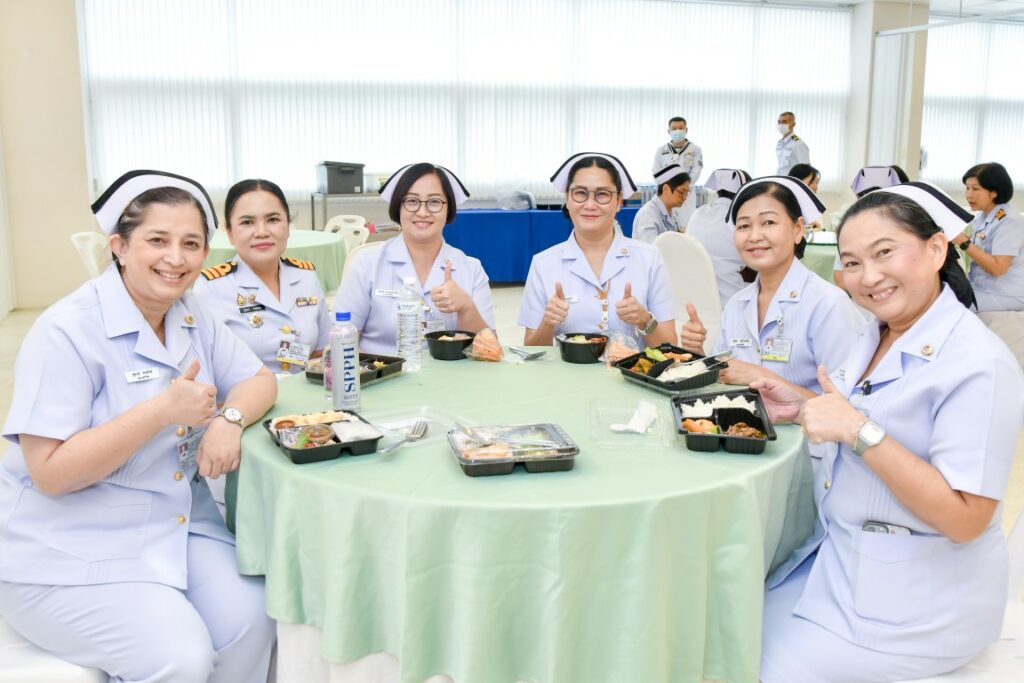 เมื่อ ๒๐ พ.ย.๖๘ รพ.สมเด็จพระปิ่นเกล้า พร. ดำเนินการตามดำริ ผบ.ทร. จัดเลี้ยงอาหารกลางวันให้แก่กำลังพลในสังกัด รพ.ฯ เนื่องในวันกองทัพเรือ ประจำปี ๒๕๖๘ เพื่อเป็นขวัญและกำลังใจในการปฏิบัติหน้าที่ โดยมี น.อ.หญิง พิมพ์สิริ ชมะนันทน์ รอง ผอ.รพ.ฯ ฝ่ายบริการสุขภาพ และ น.อ.หญิง จิรพรรณ ตันติมงคลสุข รองผอ.รพ.ฯ ฝ่ายการแพทย์เชิงรุกและอนามัยสิ่งแวดล้อม รับประทานอาหารกลางวันร่วมกับกำลังพล รพ.ฯ ณ ห้องอเนกประสงค์ ชั้น ๓ อาคารผู้ป่วยนอก รพ.ฯ / รพ.สมเด็จพระปิ่นเกล้าฯ / By ข่าวผู้บังคับบัญชา จำนวนคนดู : 0