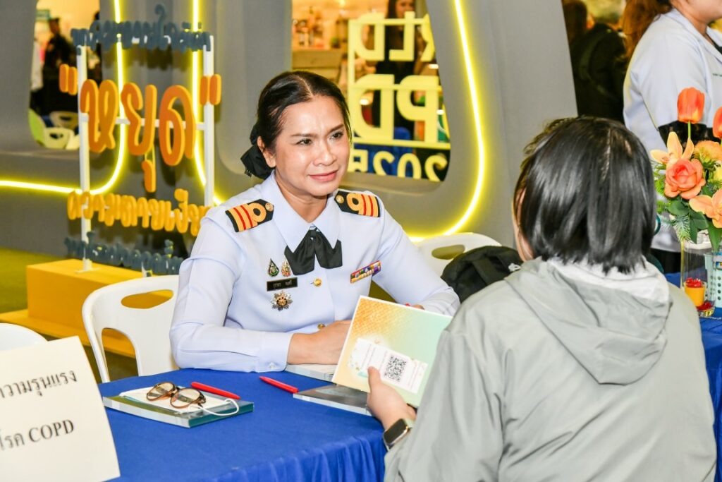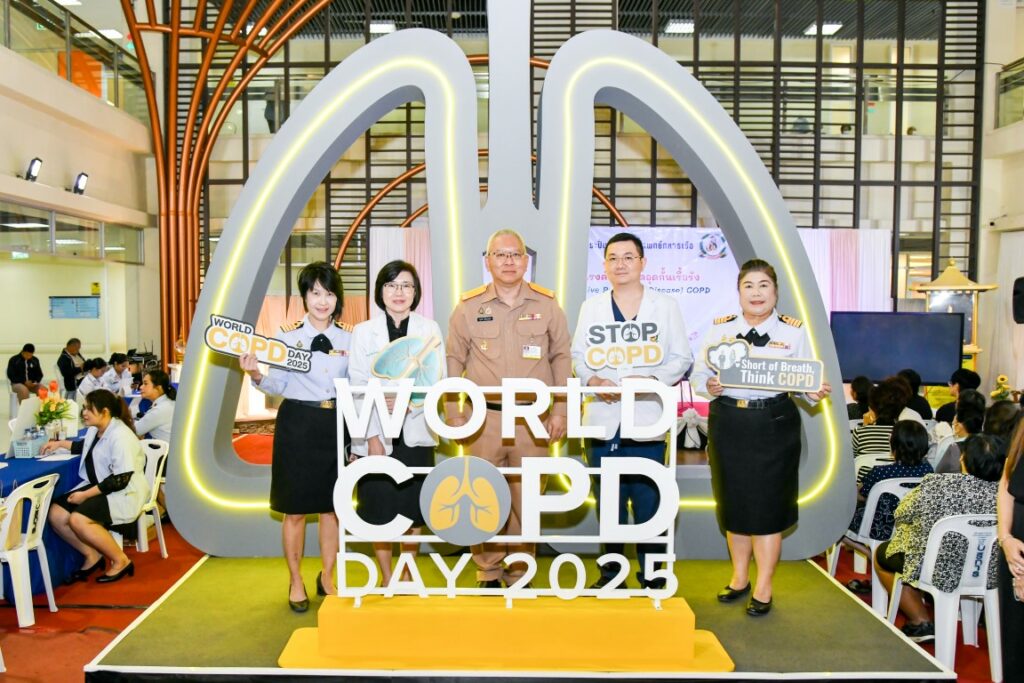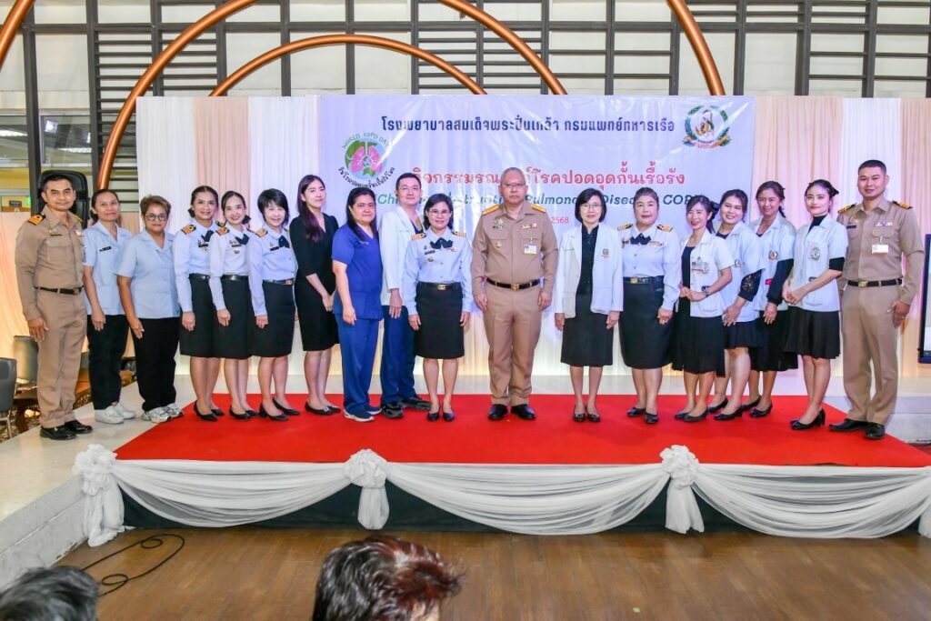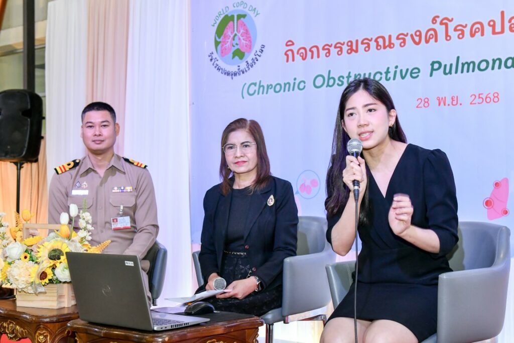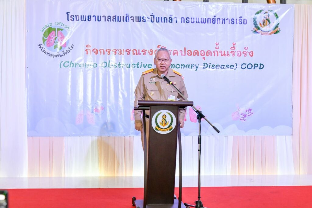 เมื่อ ๒๘ พ.ย.๖๘ พล.ร.ต.จตุรงค์ ตันติมงคลสุข ผอ.รพ.สมเด็จพระปิ่นเกล้า พร. เป็นประธานเปิดกิจกรรมรณรงค์โรคปอดอุดกั้นเรื้อรัง (COPD) เนื่องในวันโรคปอดอุดกั้นเรื้อรังโลก (World COPD Day) ปี ๒๐๒๕ ภายใต้แนวคิด “Short of Breath, Think COPD : ทุกลมหายใจมีค่า หยุดความตายเงียบจากโรคปอดอุดกั้นเรื้อรัง” โดยมี น.อ.หญิง จันทราภรณ์ เคียมเส็ง รอง ผอ.รพ.ฯ ฝ่ายบริหาร น.อ.หญิง จิรพรรณ ตันติมงคลสุข รอง ผอ.รพ.ฯ ฝ่ายการแพทย์เชิงรุกและอนามัยสิ่งแวดล้อม ผู้มารับบริการและประชาชนที่สนใจ ร่วมกิจกรรมฯ ณ ลานอเนกประสงค์ ชั้น ๑ อาคารพิเคราะห์และบำบัดโรค รพ.ฯ / รพ.สมเด็จพระปิ่นเกล้าฯ / By ข่าวผู้บังคับบัญชา จำนวนคนดู : 0