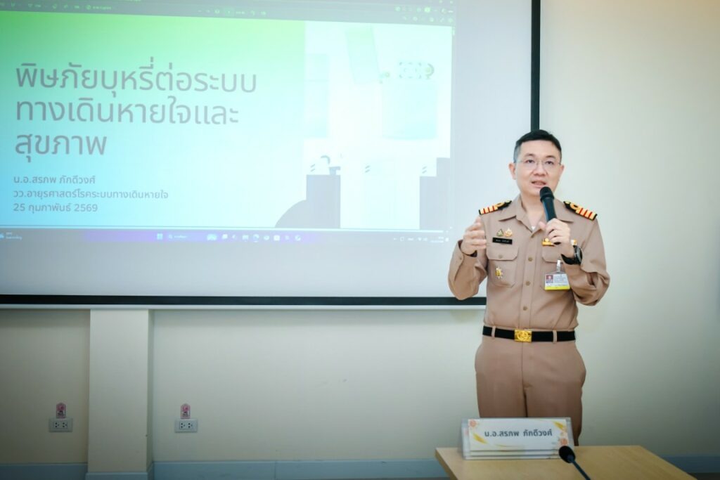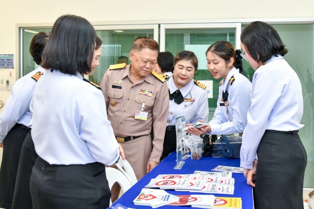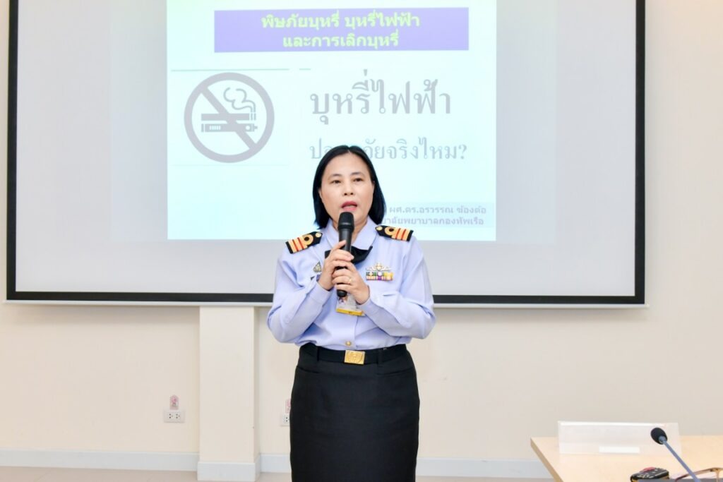 เมื่อ ๒๕ ก.พ.๖๙ พล.ร.ต.วิรัช สมบูรณ์โชคดี ผู้อำนวยการอู่ทหารเรือธนบุรี กรมอู่ทหารเรือ เป็นประธานเปิดโครงการ “กำลังพล ทร.ปอดใส ไร้ควันบุหรี่” โดยมี น.อ.หญิง จิรพรรณ ตันติมงคลสุข รอง ผอ.รพ.สมเด็จพระปิ่นเกล้า พร. กล่าวรายงานวัตถุประสงค์ฯ โครงการนี้เป็นความร่วมมือระหว่างกลุ่มงานอาชีวเวชกรรม รพ.ฯ และ วพร. จัดขึ้นต่อเนื่องจากปี ๒๕๖๘ มีผู้เข้าร่วม ๒๐๐ นาย และสมัครใจเลิกบุหรี่ ๔๒ นาย ภายในงานมีกิจกรรมประเมินสุขภาพ ให้ความรู้ คำปรึกษา กลุ่มบำบัด และติดตามผลอย่างต่อเนื่อง เพื่อส่งเสริมสุขภาพและคุณภาพชีวิตกำลังพลให้ดียิ่งขึ้น ณ อู่ทหารเรือธนบุรี / รพ.สมเด็จพระปิ่นเกล้าฯ / By ข่าวผู้บังคับบัญชา จำนวนคนดู : 160