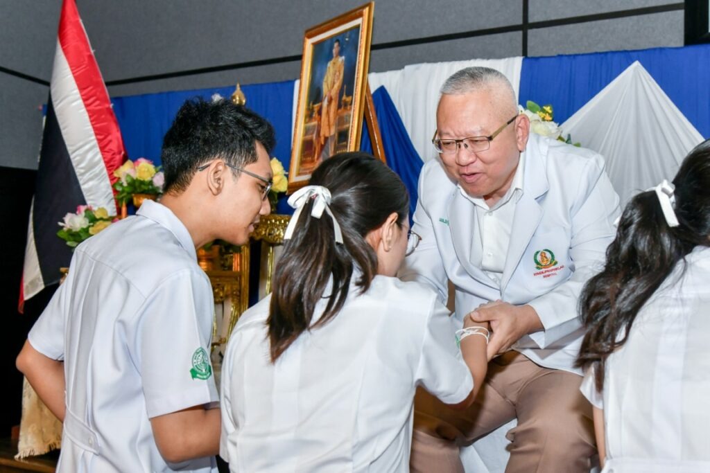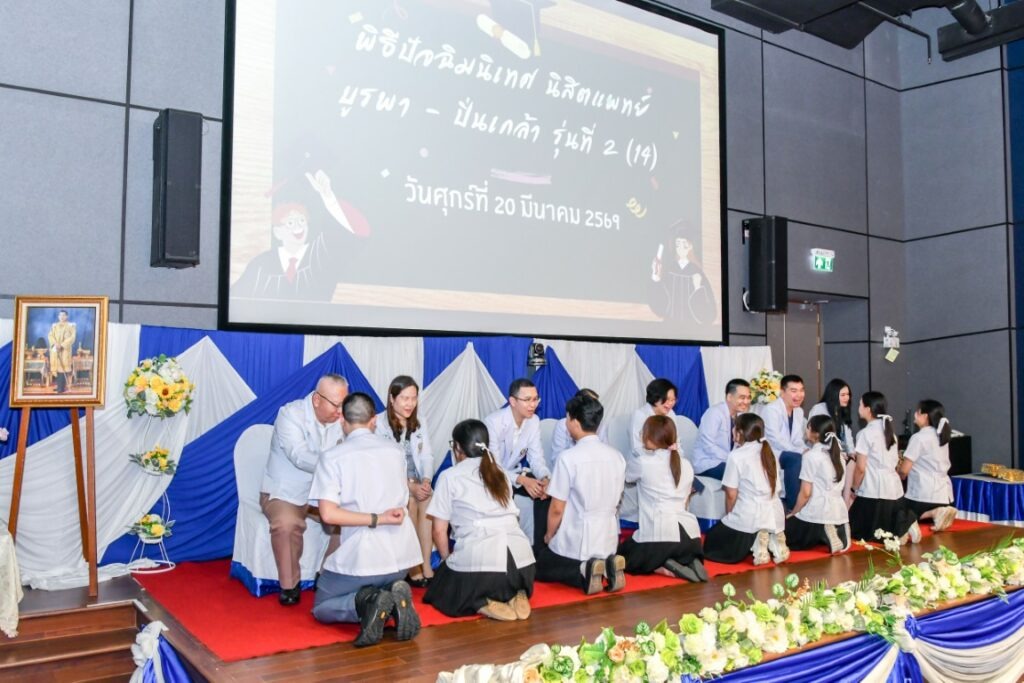 เมื่อ ๒๐ มี.ค.๖๙ พล.ร.ต.จตุรงค์ ตันติมงคลสุข ผอ.รพ.สมเด็จพระปิ่นเกล้า พร. เป็นประธานในพิธีอำลาสถาบันและผูกข้อมือแก่นิสิตแพทย์ชั้นปีที่ ๖ รุ่นที่ ๒ (ม.บูรพา รุ่นที่ ๑๔) ประจำปีการศึกษา ๒๕๖๘ โดยมี พล.ร.ต.หญิง ภาวิกา ธรรมโน ที่ปรึกษาผู้อำนวยการ รพ.ฯ ด้านงานแพทยศาสตรศึกษา พร้อมด้วย น.อ.หญิง พิมพ์สิริ ชมะนันทน์ รอง ผอ.ฝ่ายบริการสุขภาพ น.อ.หญิง จริยา สันตติอนันต์ รอง ผอ.ฝ่ายสนับสนุน ตลอดจนคณาจารย์แพทย์ เข้าร่วมพิธีฯ ณ ห้องประชุมเธียเตอร์ ชั้น ๑๓ อาคารทศมบพิตร รพ.ฯ