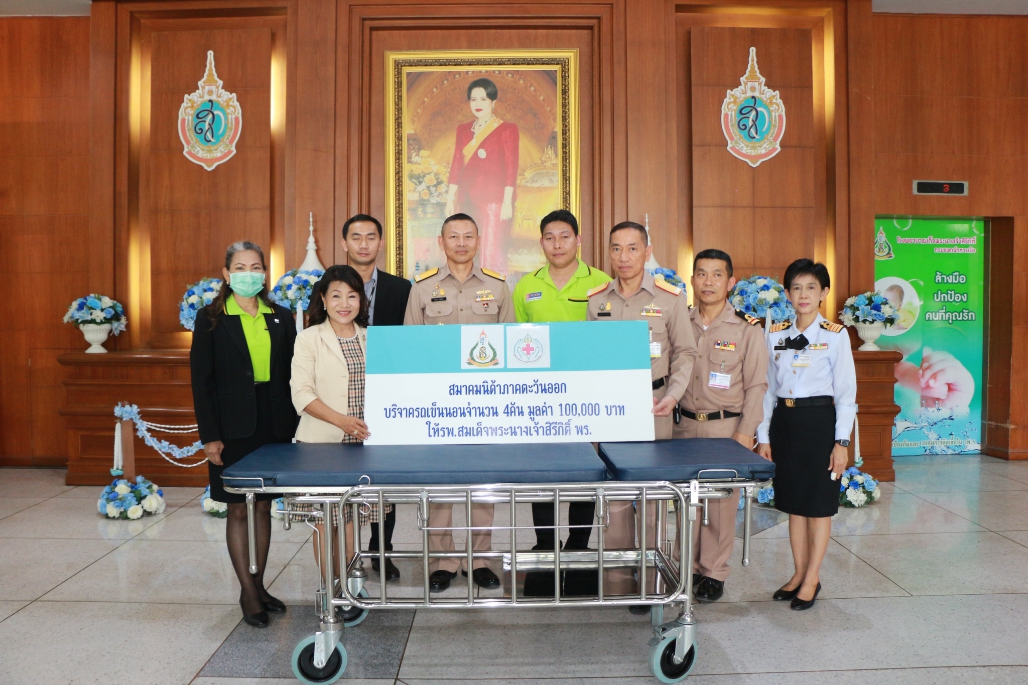 พลเรือตรี เกิดศักดิ์ วีระโยธิน ผู้อำนวยการโรงพยาบาลสมเด็จพระนางเจ้าสิริกิติ์ กรมแพทย์ทหารเรือ รับมอบรถเข็นนอนจำนวน ๔ คันมูลค่า ๑๐๐,๐๐๐ บาท จาก สมาคมนิด้าภาคตะวันออก ณ ห้องโถงอาคารพิเคราะห์และบำบัดโรค โรงพยาบาลสมเด็จพระนางเจ้าสิริกิติ์ กรมแพทย์ทหารเรือ เมื่อวันที่ ๑๒ มีนาคม พ.ศ.๒๕๖๓