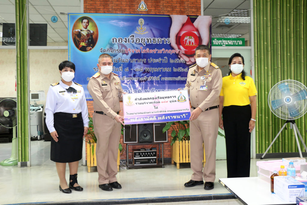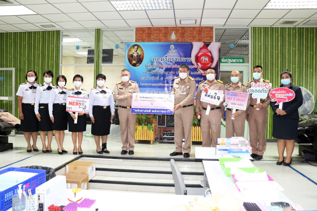 เมื่อวันที่ 17 พ.ค.64 พล.ร.ต.ชลธร สุวรรณกิตติ ผอ.รพ.สมเด็จพระนางเจ้าสิริกิติ์ พร. ให้การต้อนรับ พล.ร.อ.สุทธินันท์ สมานรักษ์ ผบ.กร. และ คุณสุนันท์ สมานรักษ์ ประธานชมรมภริยากองเรือยุทธการ พร้อมคณะ ที่ได้เดินทางมาทำกิจกรรม บริจาคโลหิตช่วยวิกฤติชาติ เนื่องในวันอาภากร ณ ห้องคลังเลือด รพ.ฯ ในโอกาสนี้ได้บริจาคน้ำดื่มจำนวน 200 แพ็ค และอาหารกลางวันจำนวน 150 ชุด เพื่อเป็นขวัญและกำลังใจ ให้กับบุคลากรทางการแพทย์ / รพ.สมเด็จพระนางเจ้าสิริกิติ์ พร. / By หน่วยขึ้นตรง จำนวนคนดู : 37