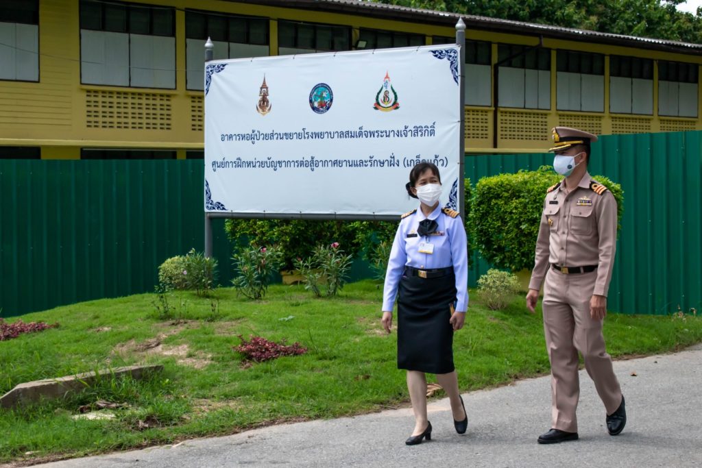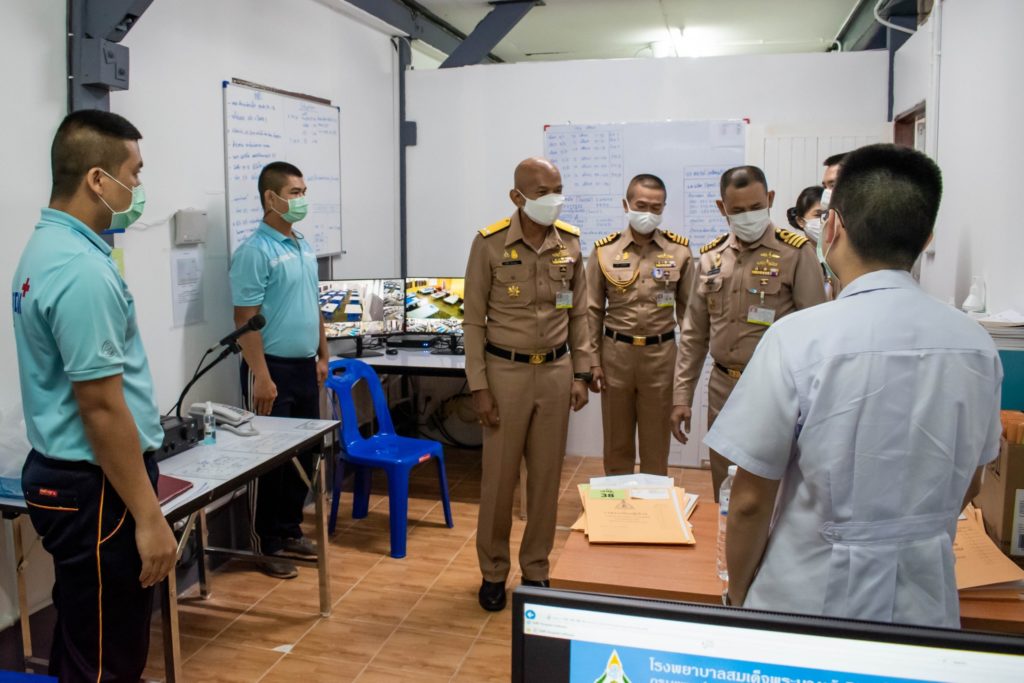 เมื่อวันที่ 16 ก.ค.64 พล.ร.ต.อุทัย ชีวะสุทธิ ผบ.สอ.รฝ. พร้อมด้วย น.อ.ณัฐพงศ์ ปานโสภณ รอง ผบ.สอ.รฝ. และคณะนายทหารฝ่ายอำนวยการ เข้าเยี่ยมชมหอผู้ป่วยขยายสำหรับรองรับทหารกองประจำการผลัดใหม่ที่ติดเชื้อไวรัสโคโรนา ๒๐๑๙ (COVID-19) และให้กำลังใจเจ้าหน้าที่ที่ปฏิบัติงาน ณ หอผู้ป่วยขยาย รพ.สมเด็จพระนางเจ้าสิริกิติ์ พร. (เกล็ดแก้ว) การนี้ น.อ.หญิง นงลักษณ์ สิงหโกวินท์ รอง ผอ.รพ.สมเด็จพระนางเจ้าสิริกิติ์ พร., น.ท.พิชเยนทร์ ศิลป์ศรีกุล ผบ.พัน.พ.กรม สน.สอ.รฝ. ให้การต้อนรับ / รพ.สมเด็จพระนางเจ้าสิริกิติ์ พร. / By หน่วยขึ้นตรง จำนวนคนดู : 47