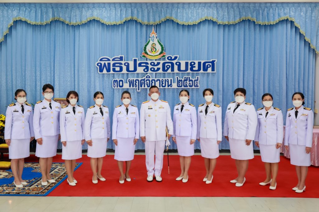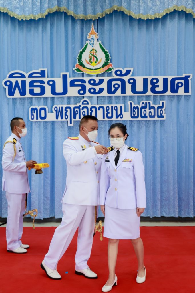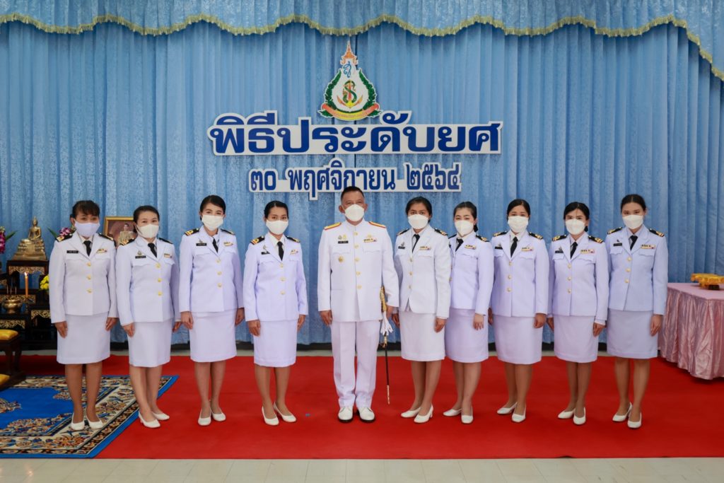 เมื่อ ๓๐ พย.๖๔ พลเรือตรี อานัน นิ่มนวล ผู้อำนวยการโรงพยาบาลสมเด็จพระนางเจ้าสิริกิติ์ กรมแพทย์ทหารเรือ เป็นประธานในพิธีประดับเครื่องหมายยศให้แก่ ข้าราชการที่ได้รับการเลื่อนยศสูงขึ้น พร้อมทั้งกล่าวให้โอวาท ณ ห้องโถง อาคารอำนวยการ ฯ / รพ.สมเด็จพระนางเจ้าสิริกิติ์ พร. / By หน่วยขึ้นตรง จำนวนคนดู : 18