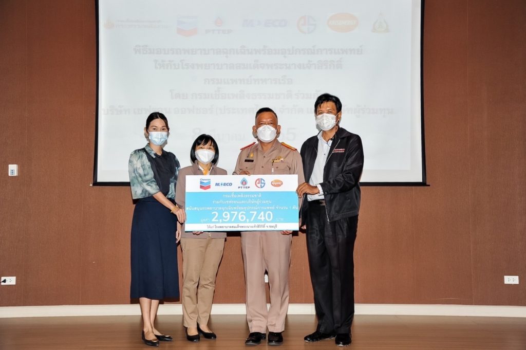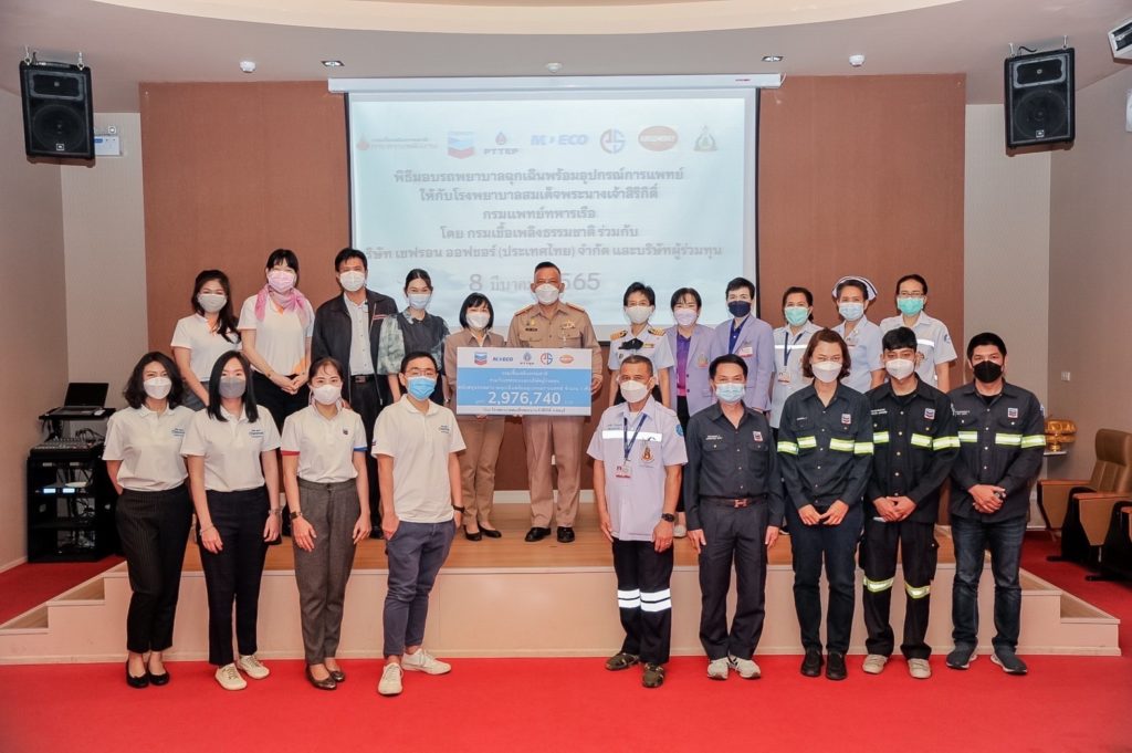 บริษัทเชฟรอน ออฟชอร์(ประเทศไทย) จำกัดและบริษัทผู้ร่วมสัมปทานปิโตรเลียมหมายเลข B8/32 บริเวณอ่าวไทย ได้รับการอนุมัติจากกรมเชื้อเพลิงธรรมชาติ กระทรวงพลังงานสนับสนุนรถพยาบาลฉุกเฉินพร้อมอุปกรณ์ช่วยชีวิตฉุกเฉิน จำนวน 1 คันมูลค่า 2,976,740 บาท ให้โรงพยาบาลสมเด็จพระนางเจ้าสิริกิติ์ โดยมี พลเรือตรี อานัน นิ่มนวล ผู้อำนวยการโรงพยาบาลสมเด็จพระนางเจ้าสิริกิติ์ เป็นผู้รับมอบ ณ ห้องประชุม 20 ปี ชั้น 2 กองอำนวยการโรงพยาบาล เมื่อวันอังคารที่ 8 มีนาคม 2565