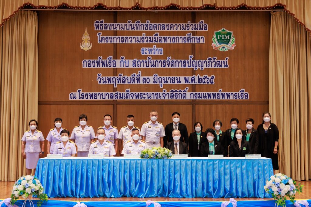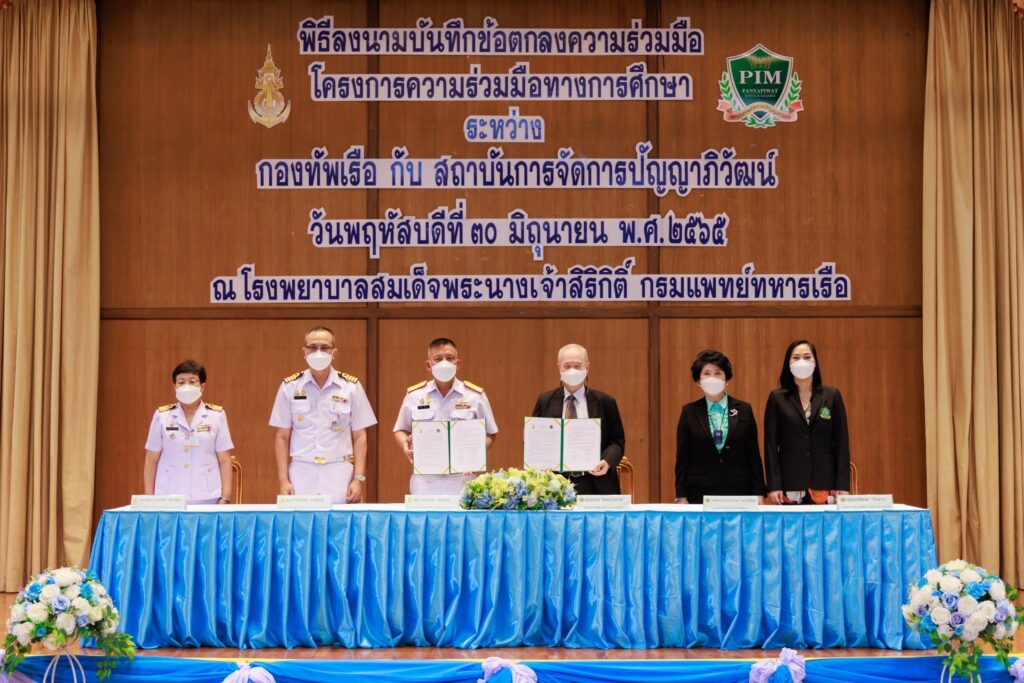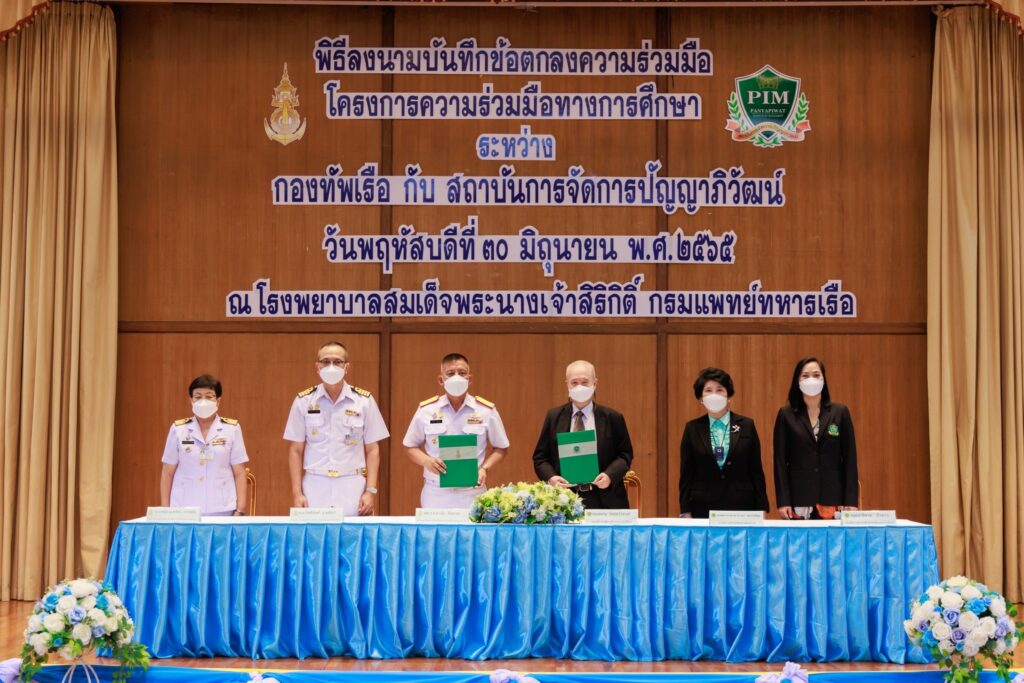 ผู้บัญชาการทหารเรือ มอบอำนาจให้ พล.ร.ต.อานัน นิ่มนวล ผู้อำนวยการโรงพยาบาลสมเด็จพระนางเจ้าสิริกิติ์ กรมแพทย์ทหารเรือ เป็นผู้ลงนามแทน บันทึกข้อตกลงให้ความร่วมมือกับ สถาบันการจัดการปัญญาภิวัฒน์ ในการจัดทำโครงการ ความร่วมมือทางการศึกษา โดยมี น.อ.กิตตินันท์ งามศิลป์ รองผู้อำนวยการ รพ.ฯ (ฝ่ายบริหาร) และ น.อ.หญิง อุบลรัตน์ เชาว์สุโข รองผู้อำนวยการ รพ.ฯ (ฝ่ายการพยาบาล) และ ศาสตราจารย์ ดร.วิภาดา คุณาวิกติกุล รองอธิการบดี ฝ่ายวิทยาศาสตร์สุขภาพ และ คุณปาริชาต บัวขาว รองอธิการบดี ฝ่ายสื่อสารองค์กรและการตลาด สถาบันการจัดการปัญญาภิวัฒน์ ร่วมลงนามเป็นสักขีพยานการจัดทำบันทึกข้อตกลงในครั้งนี้ มีความมุ่งหมายในการประสานความร่วมมือพัฒนาองค์ความรู้ทางวิชาการในด้านต่างๆ และสนับสนุนการฝึกภาคปฏิบัติของนักศึกษาหลักสูตรพยาบาลศาสตร์ ซึ่งจะก่อให้เกิดประโยชน์สูงสุดในการพัฒนาศักยภาพทางด้านการพยาบาล การพัฒนาบุคลากร การพัฒนากระบวนการผลิตและบริการ และด้านการวิจัยและการพัฒนาที่มีความสำคัญต่อการพัฒนาประเทศสำหรับ สถาบันการจัดการปัญญาภิวัฒน์ (Panyapiwat Institute of Management/PIM) เป็นสถาบันอุดมศึกษาที่เน้นเสริมสร้างประสบการณ์การทำงานให้แก่นักศึกษาโดยเน้นรูปแบบการเรียนทฤษฎีควบคู่กับการปฏิบัติ หรือฝึกงานที่ตรงกับสาขาวิชาที่เรียนจริงๆ Work-based Education (WBE) เป็นการสร้างมืออาชีพด้วยมืออาชีพ และสร้างบัณฑิตมืออาชีพด้วยการเรียนรู้จากประสบการณ์จริง