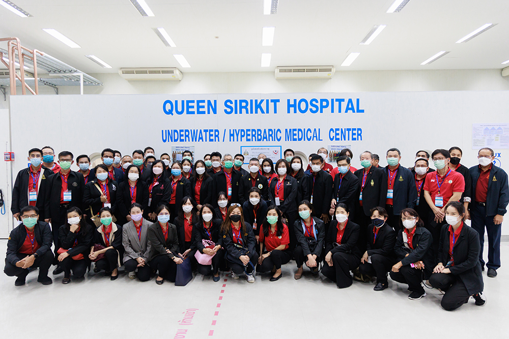 เมื่อ ๒๕ ส.ค.๖๕ พลเรือตรี อานัน นิ่มนวล ผอ.รพ.สมเด็จพระนางเจ้าสิริกิติ์ พร. ให้การต้อนรับ คุณศิริมาศ ตัญจพัฒณ์กุล อธิบดีอัยการ สำนักงานอัยการสูงสุด สถาบันพัฒนาข้าราชการฝ่ายอัยการ และผู้เข้ารับการอบรมหลักสูตร “ผู้เชี่ยวชาญดำเนินคดีทางการแพทย์” รุ่นที่ ๑ จำนวน ๖๓ คน ในโอกาสเข้าศึกษาดูงานเยี่ยมชมและฟังการบรรยายสรุปภารกิจหน้าที่ รพ.สมเด็จพระนางเจ้าสิริกิติ์ฯ ระบบบริการทางการแพทย์สนับสนุนกองทัพเรือ โดยมี นาวาเอก กิตตินันท์ งามศิลป์ รอง ผอ.รพ.สมเด็จพระนางเจ้าสิริกิติ์ฯ ฝ่ายบริหาร นาวาโท พิชเยนทร์ ศิลป์ศรีกุล ผบ.พัน.พ.กรม สน.สอ.รฝ. เป็นวิทยากรบรรยายสรุป ณ ห้องประชุม ๒๐ ปี อาคารอำนวยการ รพ.ฯ และเยี่ยมชมห้องปรับบรรยากาศสูง (Hyperbaric Chamber) โดย นาวาเอก ธีรศักดิ์ มหามงคล หัวหน้าศูนย์เวชศาสตร์ความดันบรรยาการสูง และคณะ นำเยี่ยมชม ณ ศูนย์เวชศาสตร์ความดันบรรยากาศสูง รพ.สมเด็จพระนางเจ้าสิริกิติ์ พร.