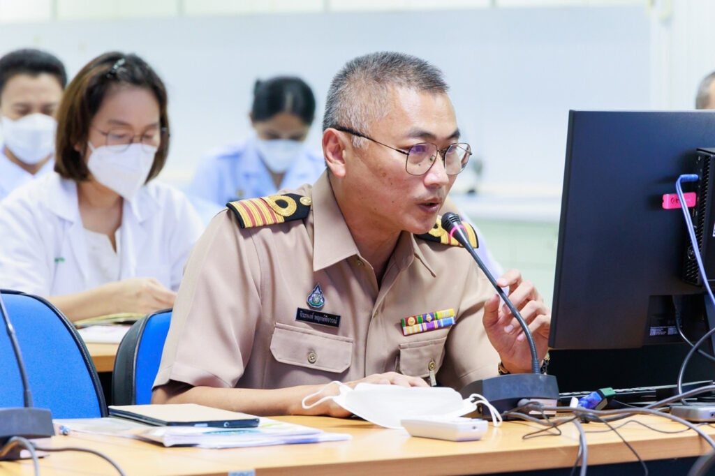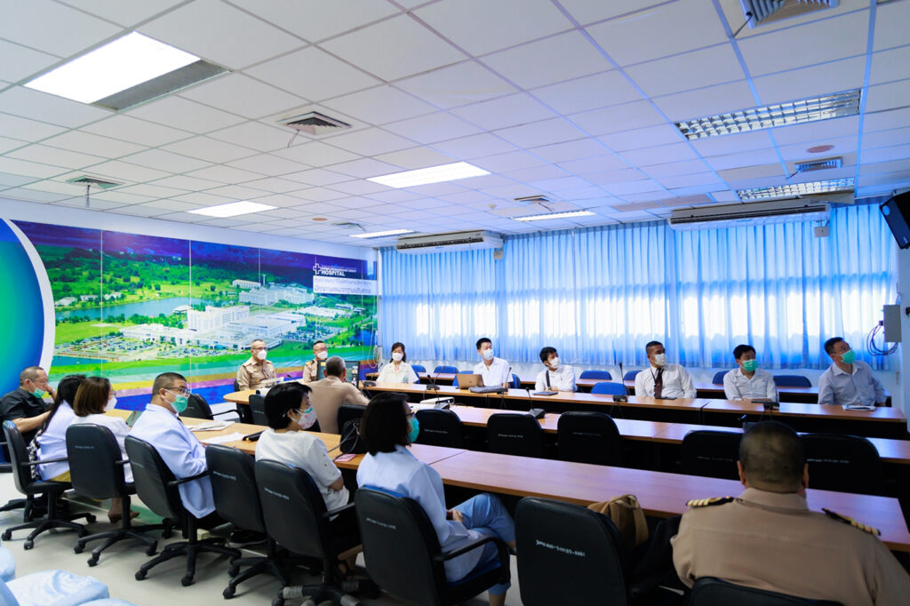 เมื่อ ๗ พ.ย.๖๕ พลเรือตรี กิตตินันท์ งามศิลป์ ผู้อำนวยการโรงพยาบาลสมเด็จพระนางเจ้าสิริกิติ์ กรมแพทย์ทหารเรือ พร้อมด้วย นาวาเอก สรรชัย เลิศวีระศิริกุล รองผู้อำนวยการฯ ฝ่ายบริหาร นาวาเอกหญิง นงลักษณ์ สิงหโกวินท์ รองผู้อำนวยการฯ ฝ่ายบริการสุขภาพ หัวหน้ากลุ่มงานแพทย์ที่ปรึกษา รับการตรวจเยี่ยมและประเมินสถาบันปฏิบัติงานเพิ่มพูนทักษะ โรงพยาบาลเพิ่มพูนทักษะแพทย์เครือข่ายที่ ๑๕ โรงพยาบาลในสังกัดกระทรวงกลาโหม ประจำปี ๒๕๖๕ ผ่านรูปแบบประเมิน online จากคณะอนุกรรมการตรวจเยี่ยมและประเมินสถาบันฯ ของแพทยสภา ณ ห้อง war room อาคารพิเคราะห์และบำบัดโรค รพ.สมเด็จพระนางเจ้าสิริกิติ์ พร. / รพ.สมเด็จพระนางเจ้าสิริกิติ์ พร. / By ข่าวผู้บังคับบัญชา จำนวนคนดู : 16