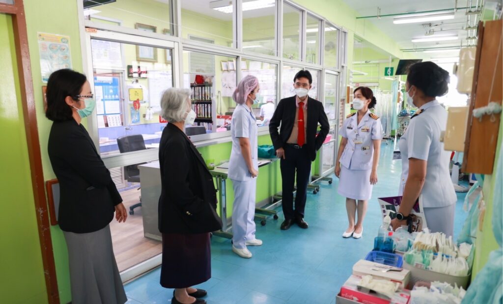 เมื่อ ๒๒ พ.ย.๖๕ พลเรือตรี กิตตินันท์ งามศิลป์ ผู้อำนวยการโรงพยาบาลสมเด็จพระนางเจ้าสิริกิติ์ กรมแพทย์ทหารเรือ ให้การต้อนรับ รองศาสตราจารย์แพทย์หญิง นันทนา ศิริทรัพย์ และคณะกรรมการตรวจประเมินตามเกณฑ์มาตรฐานการศึกษาแพทยศาสตร์ สถาบันรับรองมาตรฐานการศึกษาแพทย์ศาสตร์ (สมพ.) (IMEAc) เนื่องในโอกาส คณะกรรมการ สมพ. ขอเข้าตรวจประเมินและขอสัมภาษณ์ผู้เกี่ยวข้อง ตามที่คณะแพทยศาสตร์ มหาวิทยาลัยบูรพา ขอรับการตรวจประเมินโรงพยาบาลสมเด็จพระนางเจ้าสิริกิติ์ กรมแพทย์ทหารเรือ เป็นโรงพยาบาลหลักเพิ่มในการจัดการเรียนการสอนในระดับชั้นคลินิก ณ รพ.สมเด็จพระนางเจ้าสิริกิติ์ พร. / รพ.สมเด็จพระนางเจ้าสิริกิติ์ พร. / By ข่าวผู้บังคับบัญชา จำนวนคนดู : 6