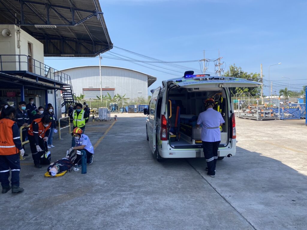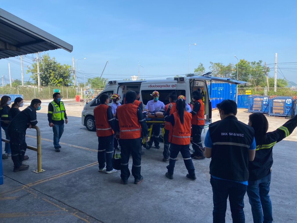 เมื่อ ๑๔ ธ.ค.๖๕ แผนกปฏิบัติการรถพยาบาล กลุ่มงานการพยาบาลอุบัติเหตุและฉุกเฉิน รพ.สมเด็จพระนางเจ้าสิริกิติ์ พร. จัดเจ้าหน้าที่พยาบาลและรถพยาบาลเข้าร่วมการฝึกซ้อมดับเพลิงและอพยพหนีไฟที่ฐานปฏิบัติการสัตหีบ บริษัท เชฟรอนประเทศไทยสำรวจเเละผลิต จำกัด ประจำปี ๒๕๖๕ ณ คลัง ๑๒ ท่าเรือจุกเสม็ด การท่าเรือสัตหีบ ฐานทัพเรือสัตหีบ / รพ.สมเด็จพระนางเจ้าสิริกิติ์ พร. / By ข่าวผู้บังคับบัญชา จำนวนคนดู : 5