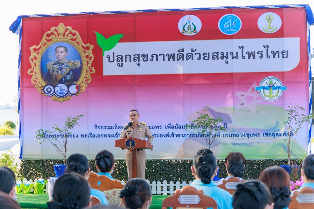 เมื่อ ๑๙ ม.ค.๖๖ พล.ร.ต.อนิรุธ สวัสดี เป็นประธานเปิดโครงการ “ปลูกสุขภาพดีด้วยสมุนไพรไทย” เพื่อน้อมรำลึก พลเรือเอก พระเจ้าบรมวงศ์เธอ พระองค์เจ้าอาภากรเกียรติวงศ์ กรมหลวงชุมพรเขตอุดมศักดิ์ สิ้นพระชนม์ ครบรอบ ๑๐๐ ปี โดยมี น.อ.หญิง นงลักษณ์ สิงหโกวินท์ รอง ผอ.รพ.สมเด็จพระนางเจ้าสิริกิติ์ พร.ข้าราชการ และลูกจ้าง รพ.ฯ ร่วมพิธี ณ สนามหญ้า หน้าสโมสรสัญญาบัตร กองเรือยุทธการ / รพ.สมเด็จพระนางเจ้าสิริกิติ์ พร. / By ข่าวผู้บังคับบัญชา จำนวนคนดู : 18