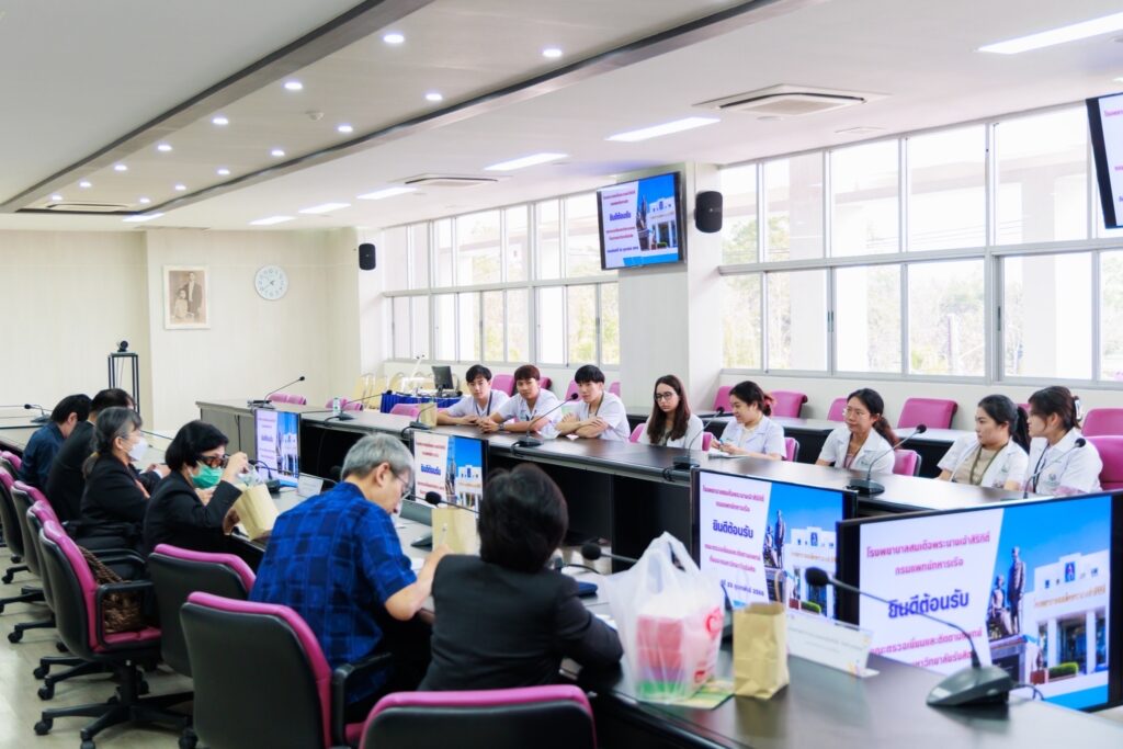 เมื่อ ๒๓ ก.พ.๖๖ พล.ร.ต.กิตตินันท์ งามศิลป์ ผอ.รพ.สมเด็จพระนางเจ้าสิริกิติ์ พร. พร้อมด้วยสำนักงานแพทยศาสตรศึกษา และคณะอาจารย์แพทย์ รพ.สมเด็จพระนางเจ้าสิริกิติ์ พร. ให้การต้อนรับ ผศ.พญ.ทัศนีย์ กิตอำนวยพงษ์ รองคณบดีฝ่ายกิจการนักศึกษา คณะอาจารย์วิทยาลัยแพทย์ศาสตร์ มหาวิทยาลัยรังสิต และคณะอาจารย์สถาบันร่วมผลิตแพทย์ กรมการแพทย์ มหาวิทยาลัยรังสิต ในการเข้าเยี่ยมและติดตามบัณฑิตแพทย์ รุ่นที่ ๒๘ ปีการศึกษา ๒๕๖๕-๒๕๖๖ ณ ห้องประชุม ๑ อาคารอำนวยการ รพ.สมเด็จพระนางเจ้าสิริกิติ์ พร. / รพ.สมเด็จพระนางเจ้าสิริกิติ์ พร. / By ข่าวผู้บังคับบัญชา จำนวนคนดู : 12