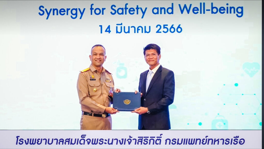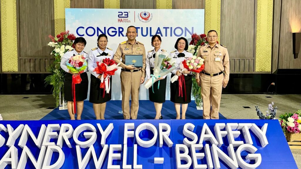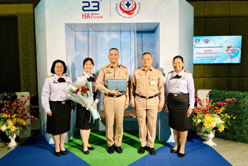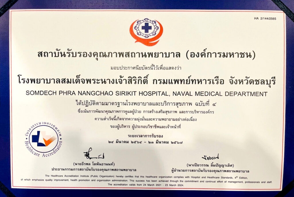 เมื่อ ๑๔ มี.ค.๖๖ พล.ร.ต.กิตตินันท์ งามศิลป์ ศิลป์ ผอ.รพ.สมเด็จพระนางเจ้าสิริกิติ์ พร. รับมอบประกาศนียบัตรสถานพยาบาลที่ผ่านการต่ออายุการรับรองกระบวนการคุณภาพมาตรฐาน HA (Healthcare Accreditation) สถาบันรับรองคุณภาพสถานพยาบาล (องค์การมหาชน) ในงานประชุมวิชาการประจําปี HA National Forum ครั้งที่ ๒๓ “Synergy for Safety and Well-being (ผนึกกำลัง เพื่อความปลอดภัยและสุขภาวะ)” โดย ดร.สาธิต ปิตุเตชะ รัฐมนตรีช่วยว่าการกระทรวงสาธารณสุข เป็นประธานพิธีมอบฯ ณ ห้องแกรนด์ ไดมอนด์บอลรูม อาคารอิมแพ็ค ฟอรั่ม เมืองทองธานี จว.นนทบุรี / รพ.สมเด็จพระนางเจ้าสิริกิติ์ พร. / By ข่าวผู้บังคับบัญชา จำนวนคนดู : 7