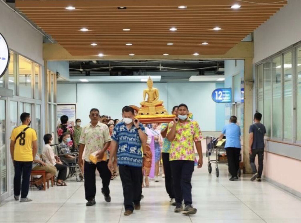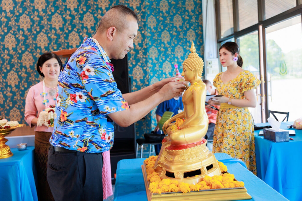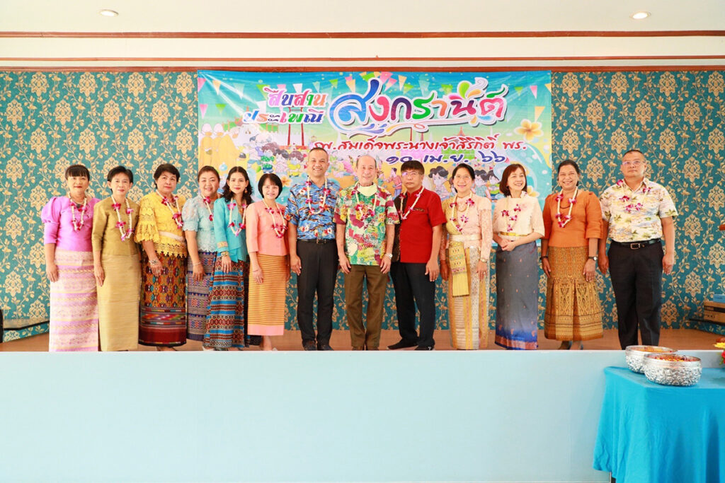 เมื่อ ๑๐ เม.ย.๖๖ พล.ร.ต.กิตตินันท์ งามศิลป์ ผอ.รพ.สมเด็จพระนางเจ้าสิริกิติ์ พร. เป็นประธานงานสืบสานประเพณีสงกรานต์ ประจำปี ๒๕๖๖ ร่วมสรงน้ำพระพุทธชินราช พระยูไลไภษัชยคุรุพุทธเจ้า พระพุทธรูปจำลอง วางพวงมาลัยถวายราชสักการะพระราชานุสาวรีย์ จอมพลเรือ สมเด็จพระมหิตลาธิเบศร อดุลยเดชวิกรม พระบรมราชชนก และสมเด็จพระศรีนครินทราบรมราชชนนี พระอนุสาวรีย์พลเรือเอก พระเจ้าบรมวงศ์เธอ พระองค์เจ้าอาภากรเกียรติวงศ์ กรมหลวงชุมพรเขตอุดมศักดิ์ โดยนำข้าราชการและลูกจ้าง แห่พระพุทธรูป ร่วมกิจกรรมย้อนวันวาน  สรงน้ำพระพุทธรูป รดน้ำขอพรผู้บังคับบัญชา และอดีตผู้บังคับบัญชา ณ อาคารบริการระบบสุขภาพ (ริมน้ำ) รพ.สมเด็จพระนางเจ้าสิริกิติ์ พร.