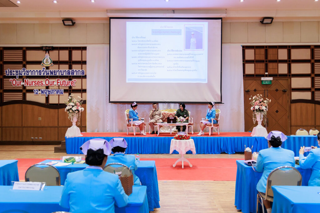 เมื่อ ๙ พ.ค.๖๖ พล.ร.ต.กิตตินันท์ งามศิลป์ ผอ.รพ.สมเด็จพระนางเจ้าสิริกิติ์ พร. เป็นประธานในพิธีเปิดงานประชุมวิชาการวันพยาบาลสากล ประจําปีงบประมาณ ๖๖ เรื่อง Our Nurses. Our Future พยาบาล : พยาบาลของเรา อนาคตของพวกเรา ณ ห้องคลองไผ่ หอประชุม รพ.สมเด็จพระนางเจ้าสิริกิติ์ พร. / รพ.สมเด็จพระนางเจ้าสิริกิติ์ พร. / By ข่าวผู้บังคับบัญชา จำนวนคนดู : 9