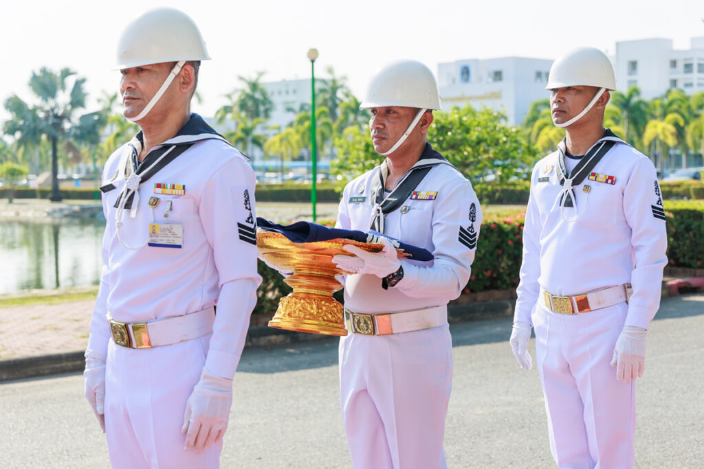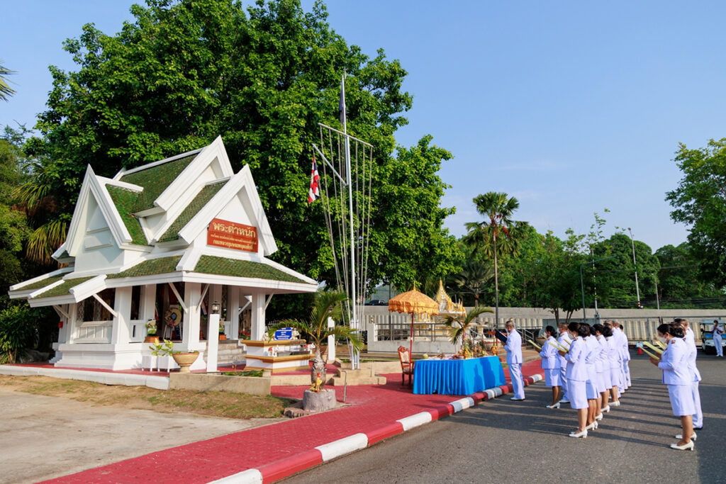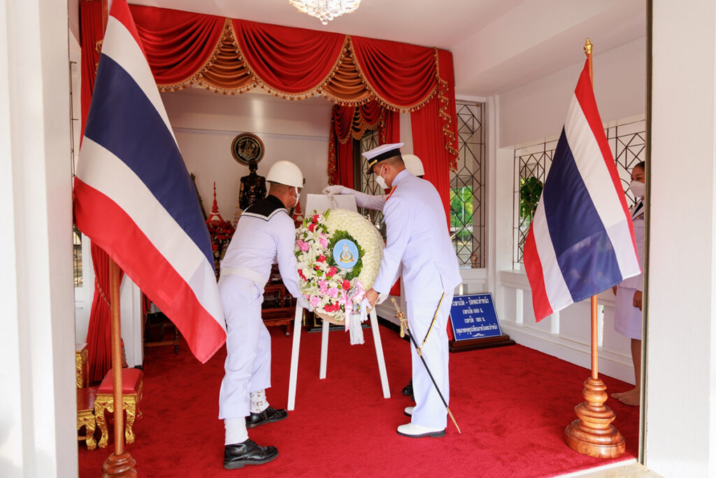 เมื่อ ๑๙ พ.ค.๖๖ พล.ร.ต.กิตตินันท์ งามศิลป์ ผอ.รพ.สมเด็จพระนางเจ้าสิริกิติ์ พร. เป็นประธานพิธีบวงสรวง ถวายสักการะ วางพวงมาลา และพิธีเปลี่ยนธงราชนาวี ธงพระยศ พร้อมกล่าวสดุดีเทิดพระเกียรติ และนำข้าราชการ สังกัด รพ.ฯ ร่วมร้องเพลงพระราชนิพนธ์ ๓ เพลง เพื่อเทิดพระเกียรติ เนื่องในงานวันครบรอบวันสิ้นพระชนม์ ๑๐๐ ปี พลเรือเอก พระเจ้าบรมวงศ์เธอ พระองค์เจ้าอาภากรเกียรติวงศ์ กรมหลวงชุมพรเขตอุดมศักดิ์ ณ พระตำหนักฯ รพ.สมเด็จพระนางเจ้าสิริกิติ์ พร. / รพ.สมเด็จพระนางเจ้าสิริกิติ์ พร. / By ข่าวผู้บังคับบัญชา จำนวนคนดู : 13