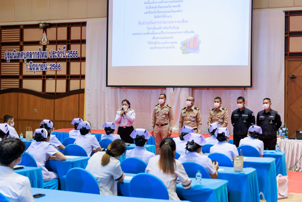 เมื่อ ๑ มิ.ย.๖๖ พล.ร.ต.กิตตินันท์ งามศิลป์ ผอ.รพ.สมเด็จพระนางเจ้าสิริกิติ์ พร. เป็นประธานเปิดการปฐมนิเทศบุคลากรใหม่ประจำปี ๒๕๖๖ เพื่อสร้างความสัมพันธ์ที่ดีระหว่างวิชาชีพ และให้บุคลากรใหม่ได้ทราบและเข้าใจในทิศทางองค์กร นโยบายต่างๆ ของ รพ.ฯ ณ หอประชุม ห้องคลองไผ่ รพ.สมเด็จพระนางเจ้าสิริกิติ์ พร. / รพ.สมเด็จพระนางเจ้าสิริกิติ์ พร. / By ข่าวผู้บังคับบัญชา จำนวนคนดู : 10