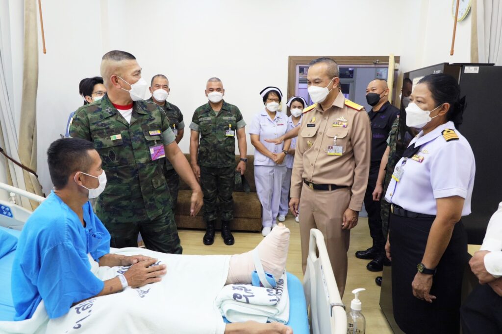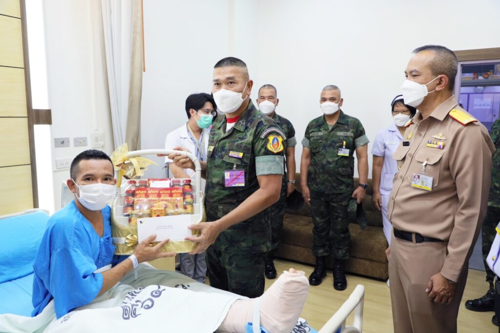 เมื่อ ๒๗ มิ.ย.๖๖ พล.ร.ท.เผดิมชัย สุคนธมัต ผบ.นย. และคณะ ได้เข้าเยี่ยมและมอบกระเช้าเพื่อเป็นขวัญกำลังใจใหักับ อส.ทพ.นย.ศักดา โยเฮือง ผู้ประสบเหตุเหยียบกับระเบิด ซึ่งถูกส่งตัวมารักษาที่ หอผู้ป่วยอุบัติเหตุชาย รพ.สมเด็จพระนางเจ้าสิริกิติ์ พร. โดยมี พล.ร.ต.กิตตินันท์ งามศิลป์ ผอ.รพ.สมเด็จพระนางเจ้าสิริกิติ์ พร. เป็นผู้ให้การต้อนรับ / รพ.สมเด็จพระนางเจ้าสิริกิติ์ พร. / By ข่าวผู้บังคับบัญชา จำนวนคนดู : 11