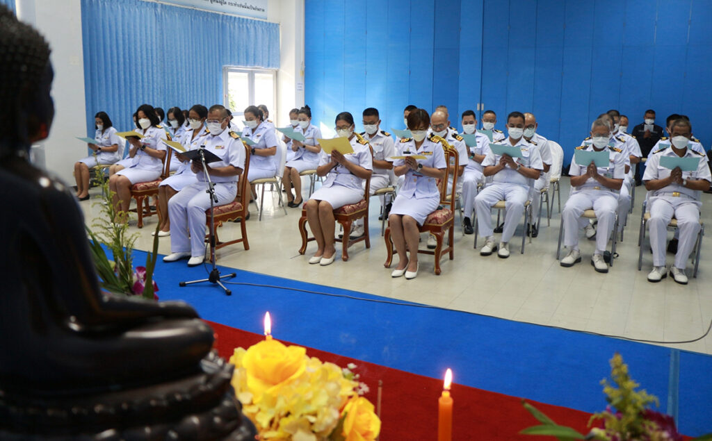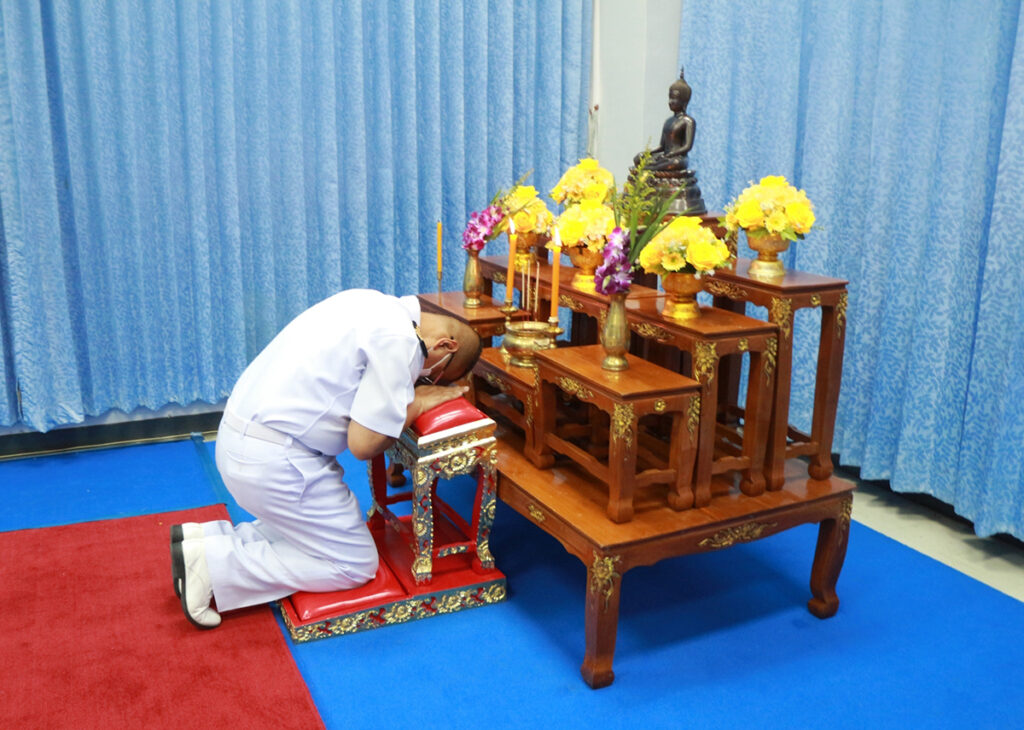 เมื่อ ๒๙ มิ.ย.๖๖ น.อ.กิติศักดิ์ สายนุช รอง ผอ.รพ.สมเด็จพระนางเจ้าสิริกิติ์ พร. เป็นประธานในพิธีสวดมนต์บูชาธรรม อธิษฐานจิต ถวายพระพรชัยมงคล แด่ สมเด็จพระเจ้าลูกเธอ เจ้าฟ้าพัชรกิติยาภา นเรนทิราเทพยวดี กรมหลวงราชสาริณีสิริพัชร มหาวัชรราชธิดา ขอให้พระองค์ทรงหายจากพระอาการประชวร โดยมีผู้บริหาร ข้าราชการ และลูกจ้าง รพ.ฯ เข้าร่วมพิธีฯ ณ อาคารอำนวยการ รพ.สมเด็จพระนางเจ้าสิริกิติ์ พร. / รพ.สมเด็จพระนางเจ้าสิริกิติ์ พร. / By ข่าวผู้บังคับบัญชา จำนวนคนดู : 8