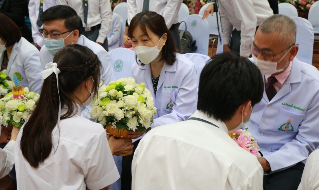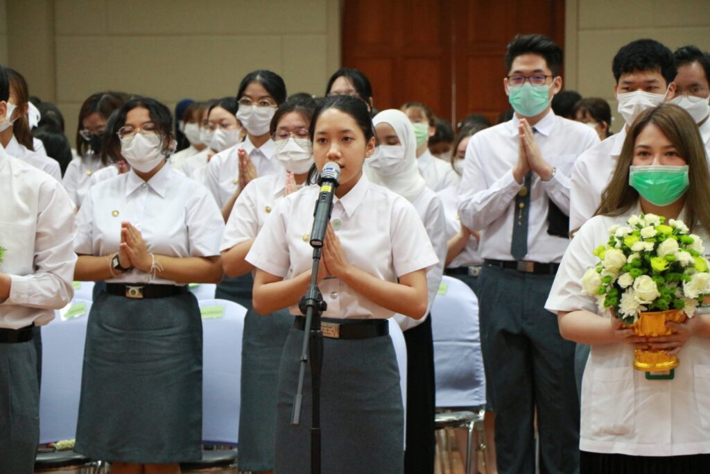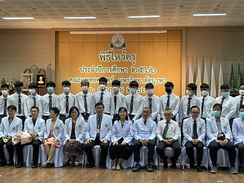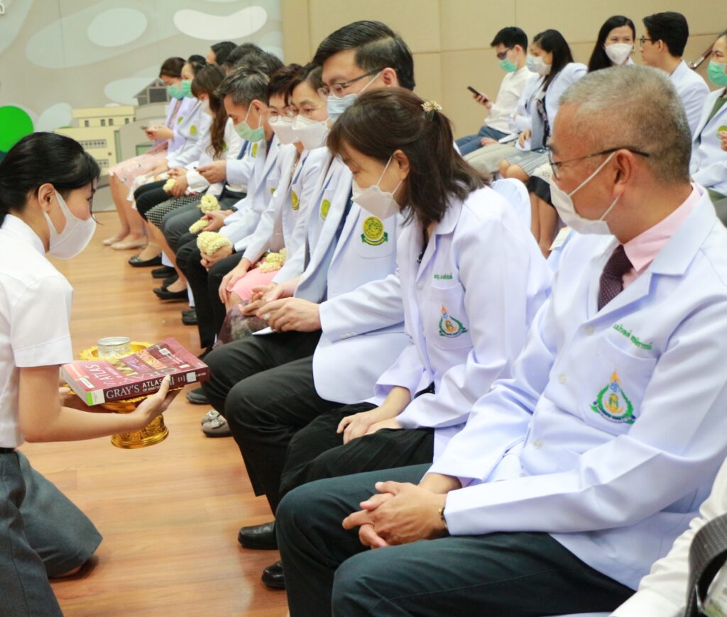 เมื่อ ๖ ก.ค.๖๖ น.อ.หญิง นงลักษณ์ สิงหโกวินท์ รอง ผอ.รพ.สมเด็จพระนางเจ้าสิริกิติ์ พร. ฝ่ายบริการสุขภาพ น.อ.จิระพงศ์ พฤกษ์พิจารณ์ ผอ.ศูนย์แพทยศาสตรศึกษา และคณะ เข้าร่วมพิธีไหว้ครูหลักสูตรแพทยศาสตรบัณฑิต คณะแพทย์ศาสตร์ มหาวิทยาลัยบูรพา ประจำปีการศึกษา ๒๕๖๖ ณ ห้อง MD 601 อาคารสมเด็จพระเทพรัตนราชสุดา คณะแพทยศาสตร์ ม.บูรพา อ.เมือง จว.ชลบุรี / รพ.สมเด็จพระนางเจ้าสิริกิติ์ พร. / By ข่าวผู้บังคับบัญชา จำนวนคนดู : 9