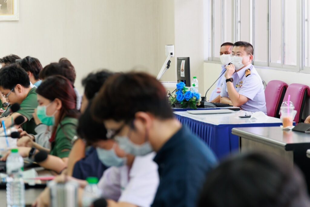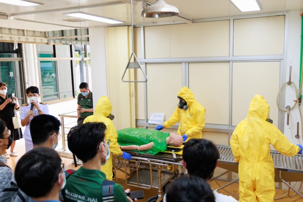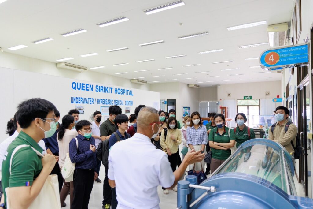 เมื่อ ๑๘ ก.ค.๖๖ น.อ.สรรชัย เลิศวีระศิริกุล รอง ผอ.รพ.สมเด็จพระนางเจ้าสิริกิติ์ พร. ให้การต้อนรับ รศ.ดร.ปวีณา มีประดิษฐ์ อาจารย์ประจำหลักสูตร อาชีวเวชศาสตร์พื้นฐาน คณะแพทยศาสตร์ มหาวิทยาลัยบูรพา และแพทย์ผู้เข้าร่วมอบรมหลักสูตรอาชีวเวชศาสตร์พื้นฐานสำหรับแพทย์ รุ่นที่ ๑๒ คณะแพทยศาสตร์ มหาวิทยาลัยบูรพา เข้าศึกษาดูงานเกี่ยวกับอุบัติภัยสารเคมีและการเตรียมความพร้อม การจัดทำแผนรับอุบัติภัยทางสารเคมี และโรคจากความกดอากาศและการบำบัดด้วยออกซิเจนแรงดันสูง ณ รพ.สมเด็จพระนางเจ้าสิริกิติ์ พร. / รพ.สมเด็จพระนางเจ้าสิริกิติ์ พร. / By ข่าวผู้บังคับบัญชา จำนวนคนดู : 12