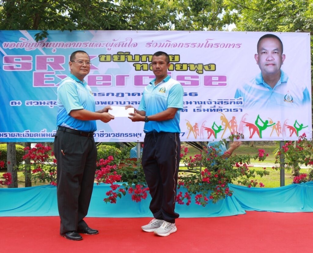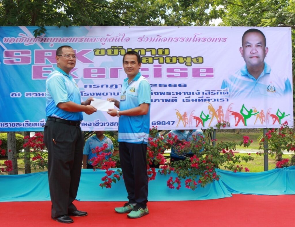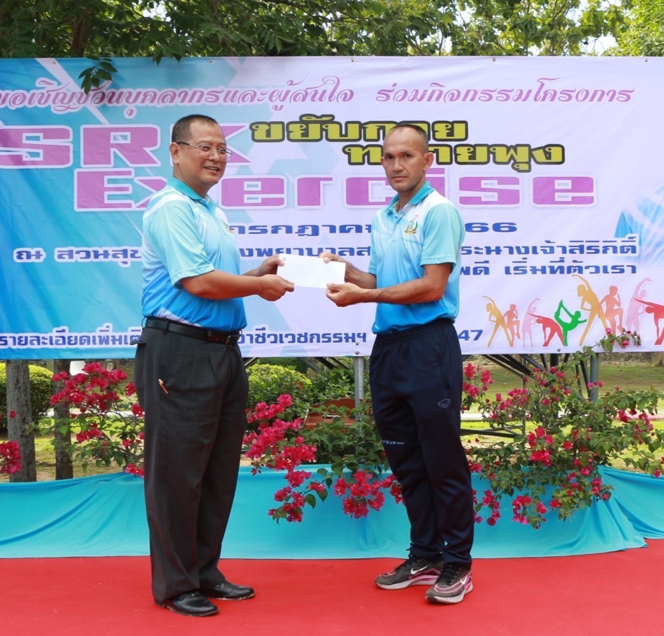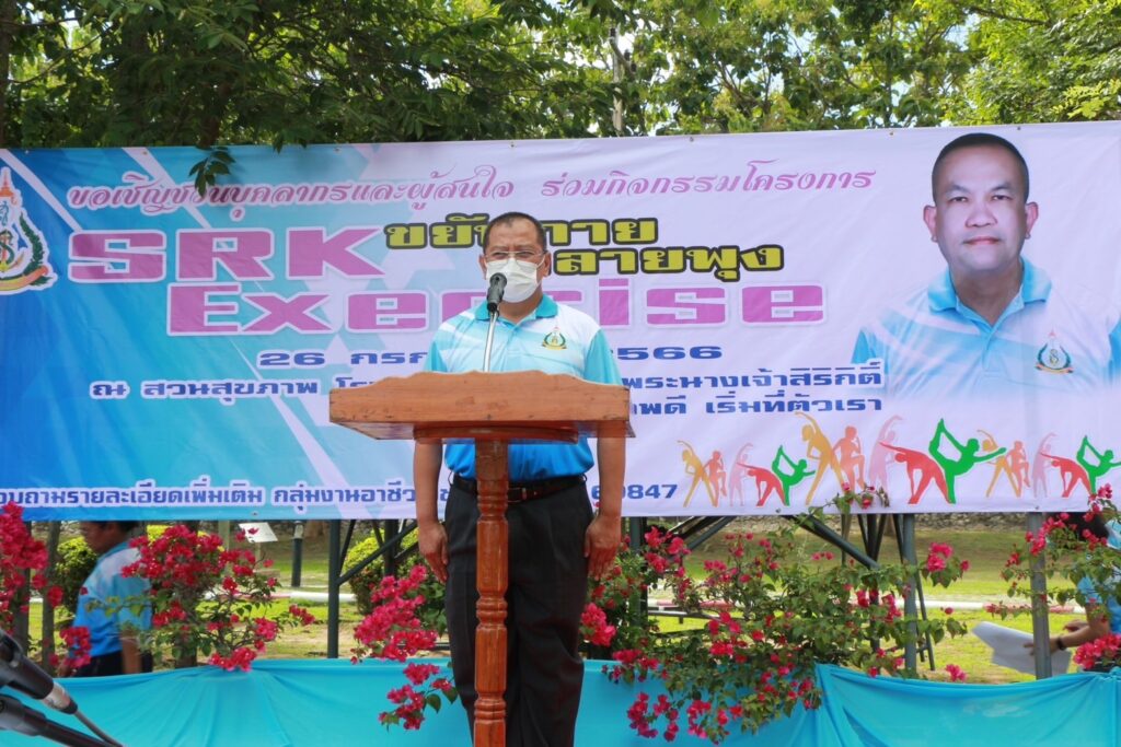 เมื่อ ๒๖ ก.ค.๖๖ น.อ.กิติศักดิ์ สายนุช รอง ผอ.รพ.สมเด็จพระนางเจ้าสิริกิติ์ พร. ฝ่ายสนับสนุน เป็นประธานเปิดโครงการ SRK Exercise ขยับกาย ทลายพุง ประจำปี 2566 ให้แก่กำลังพล รพ.ฯ จัดโดย แผนกสร้างเสริมสุขภาพและฟื้นฟูสภาพวัยทำงาน กลุ่มงานอาชีวเวชกรรม รพ.ฯ และขอเชิญชวนผู้สนใจ เต้นแอโรบิคและออกกำลังกาย ทุกวันพุธ ณ สวนสุขภาพ รพ.สมเด็จพระนางเจ้าสิริกิติ์ พร. / รพ.สมเด็จพระนางเจ้าสิริกิติ์ พร. / By ข่าวผู้บังคับบัญชา จำนวนคนดู : 9