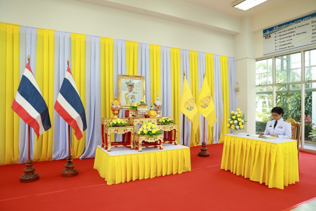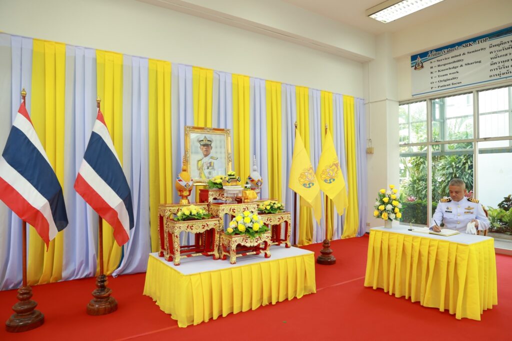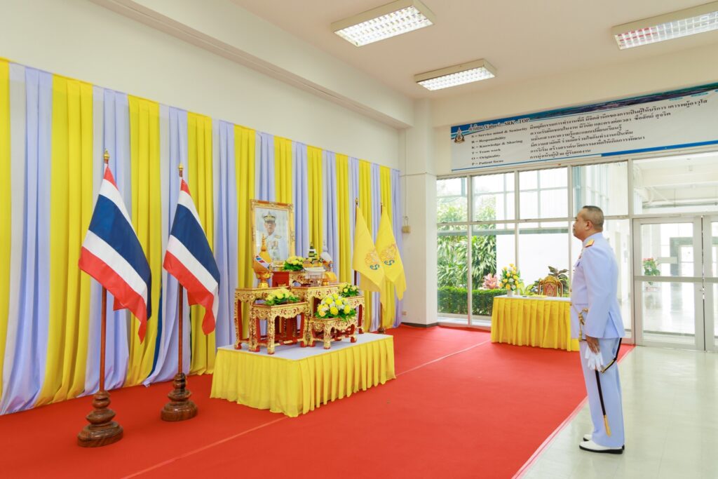 เมื่อ ๒๗ ก.ค.๖๖ พล.ร.ต.กิตตินันท์ งามศิลป์ ผอ.รพ.สมเด็จพระนางเจ้าสิริกิติ์ พร. เป็นประธานในพิธีถวายพระพรชัยมงคล เนื่องในโอกาสวันเฉลิมพระชนมพรรษาพระบาทสมเด็จพระวชิรเกล้าเจ้าอยู่หัว โดยมี ข้าราชการ รพ.สมเด็จพระนางเจ้าสิริกิติ์ฯ เข้าร่วมพิธี ถวายพระพรชัยมงคล และลงนามถวายพระพรฯ ณ ห้องโถงอาคารอำนวยการ รพ.สมเด็จพระนางเจ้าสิริกิติ์ พร.