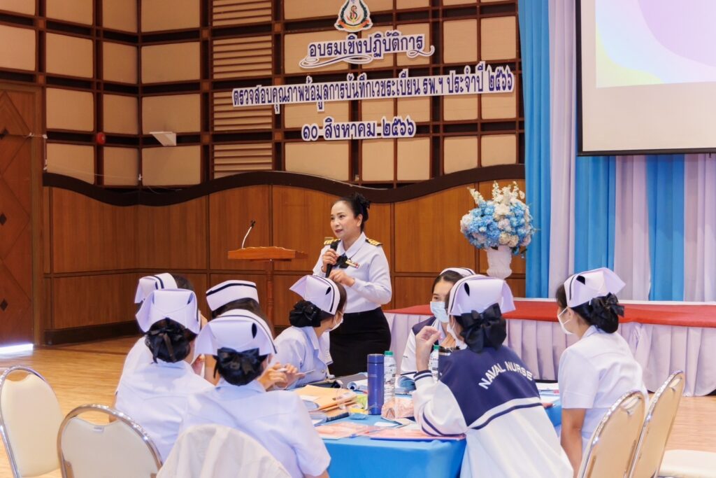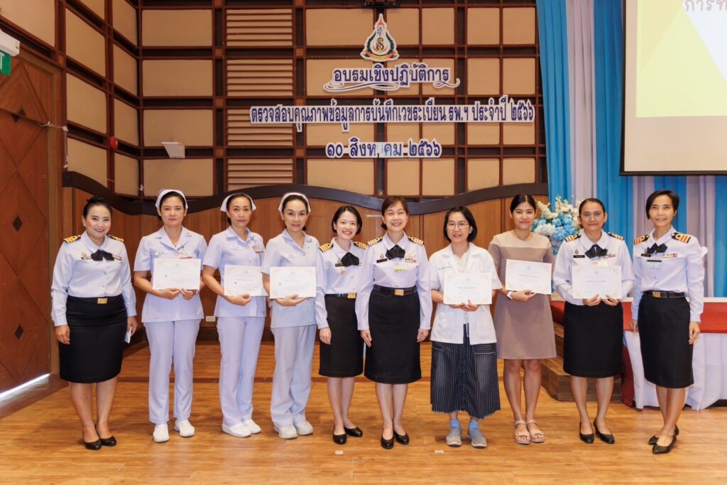 เมื่อ ๑๐ ส.ค.๖๖ น.อ.หญิง นงลักษณ์ สิงหโกวินท์ รอง ผอ.รพ.สมเด็จพระนางเจ้าสิริกิติ์ พร. ฝ่ายบริการสุขภาพ เป็นประธานเปิดโครงการอบรมเชิงปฏิบัติการตรวจสอบคุณภาพข้อมูลการบันทึกเวชระเบียน รพ.ฯ ประจำปี ๒๕๖๖ โดยมี แพทย์ พยาบาล และ ผู้แทนทีมนำทางคลินิก (CLT) ที่เกี่ยวข้องทุกหน่วย เข้าร่วมการอบรมฯ ณ ห้องคลองไผ่ หอประชุม รพ.สมเด็จพระนางเจ้าสิริกิติ์ พร.