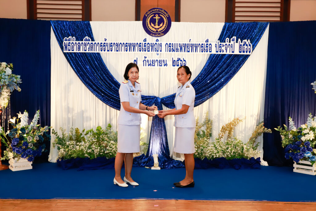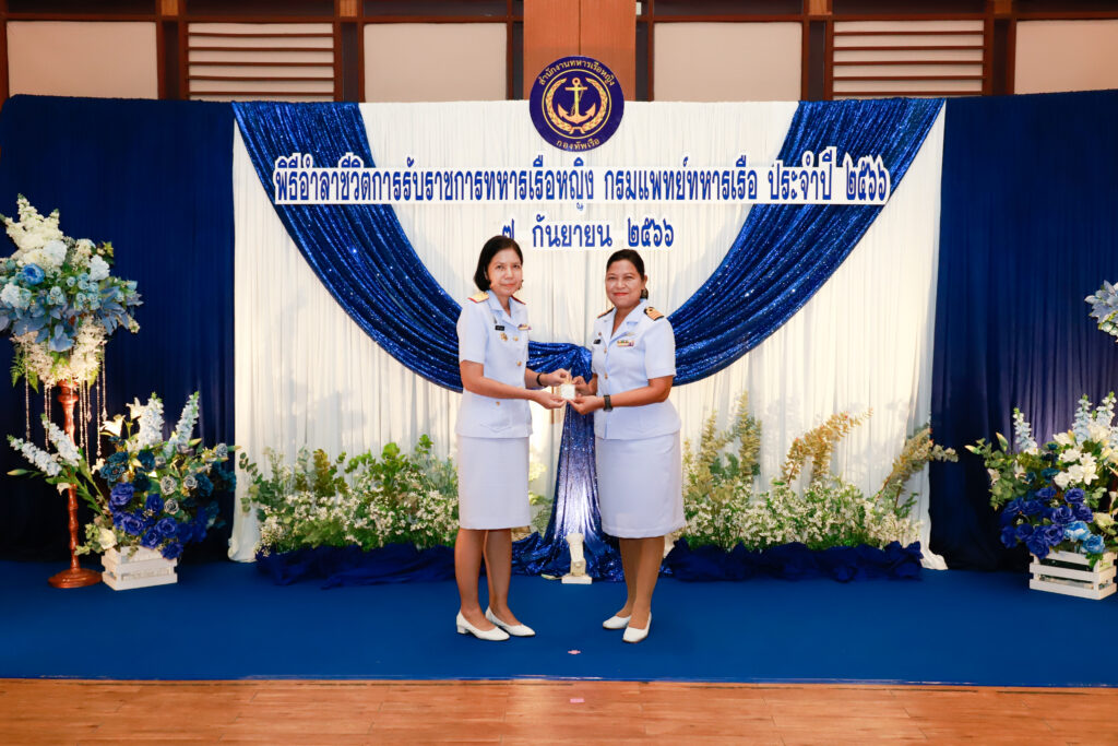 เมื่อ ๗ ก.ย.๖๖ พล.ร.ต.หญิง อรมณี บุนนาค ผอ.ศพส.พร./หน.สนง.ทร.หญิง เป็นประธานในพิธีอำลาชีวิตรับราชการผู้ครบเกษียณอายุราชการ และผู้ขอลาออกจากราชการตามโครงการเกษียณอายุราชการก่อนกำหนด ของ ทหารเรือหญิง พร. ประจำปี ๒๕๖๖ โดยมี ข้าราชการ พร. เข้าร่วมพิธีฯ ณ ห้องคลองไพ่ รพ.สมเด็จพระนางเจ้าสิริกิติ์ พร. / รพ.สมเด็จพระนางเจ้าสิริกิติ์ พร. / By ข่าวผู้บังคับบัญชา จำนวนคนดู : 10