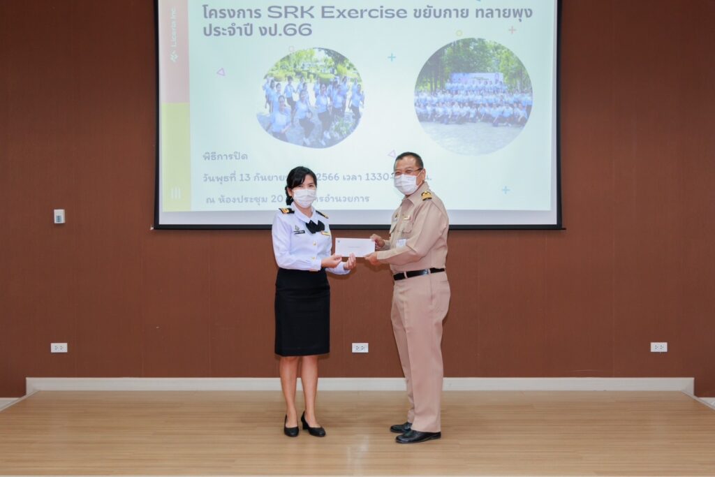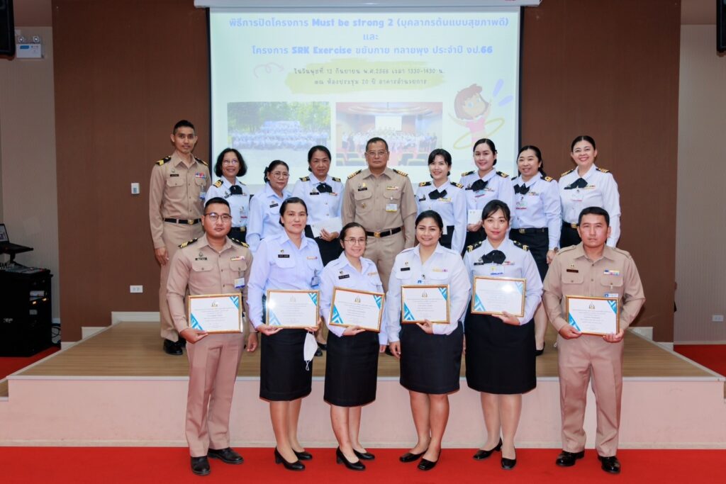 เมื่อ ๑๓ ก.ย.๖๖ น.อ.กิตติศักดิ์ สายนุช รอง ผอ.รพ.สมเด็จพระนางเจ้าสิริกิติ์ พร. ฝ่ายสนับสนุน เป็นประธานปิดโครงการ Must be strong 2 (บุคลากรต้นแบบสุขภาพดี) และปิดโครงการ SRK Exercise ขยับกาย ทลายพุง ประจำปีงบประมาณ ๒๕๖๖ พร้อมมอบรางวัลให้บุคลากรเข้าร่วมโครงการที่ชนะเลิศ ณ ห้องประชุม ๒๐ ปี อาคารอำนวยการ รพ.สมเด็จพระนางเจ้าสิริกิติ์ พร. / รพ.สมเด็จพระนางเจ้าสิริกิติ์ พร. / By ข่าวผู้บังคับบัญชา จำนวนคนดู : 3