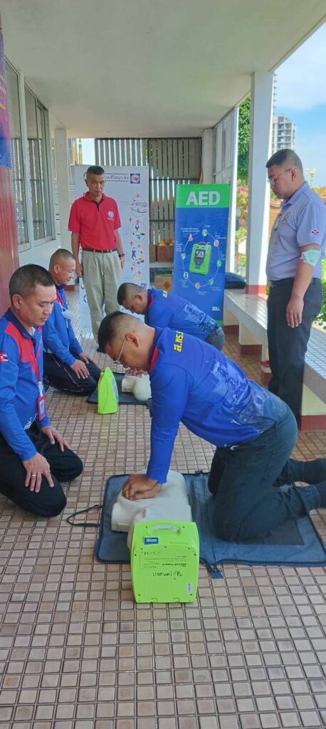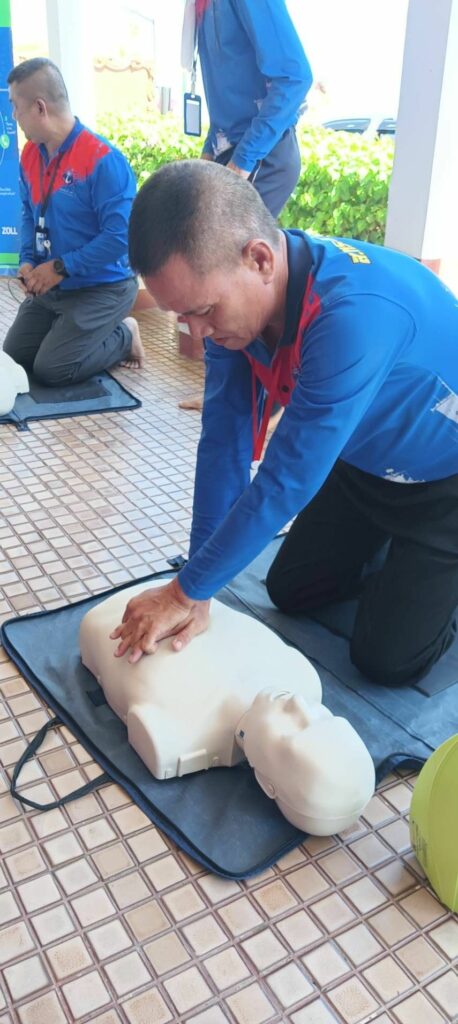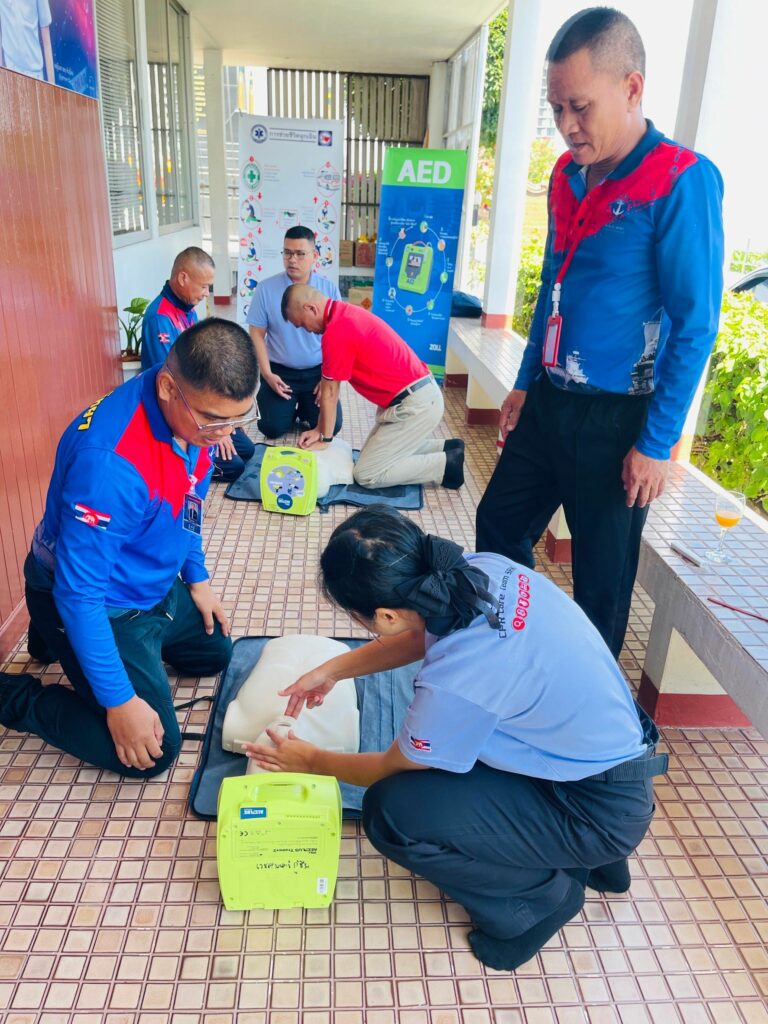 เมื่อ ๑๙ พ.ย.๖๖ แผนกเวชศาสตร์กู้ชีพ กลุ่มงานการพยาบาลอุบัติเหตุและฉุกเฉิน รพ.สมเด็จพระนางเจ้าสิริกิติ์ พร. ฝ่ายการพยาบาล สนับสนุนวิทยากรอบรมให้ความรู้และฝึกปฏิบัติ การปฐมพยาบาลเบื้องต้น, การช่วยฟื้นคืนชีพขั้นพื้นฐาน (CPR), การใช้เครื่องฟื้นคืนคลื่นหัวใจด้วยไฟฟ้าแบบอัตโนมัติ (AED) ให้แก่ กำลังพลสถานีวิทยุเสียงจากทหารเรือ ๕ พัทยา โดยมี น.ท.มานิต จงโยธา ผอ.ส.ทร.๕ พัทยา และน.ท.ณรงค์ชัย ชมไพร รอง ผอ.ส.ทร.๕ พัทยา เข้าร่วมการฝึกอบรมฯ ณ ห้องประชุม ส.ทร.๕ พัทยา / รพ.สมเด็จพระนางเจ้าสิริกิติ์ พร. / By ข่าวผู้บังคับบัญชา จำนวนคนดู : 2